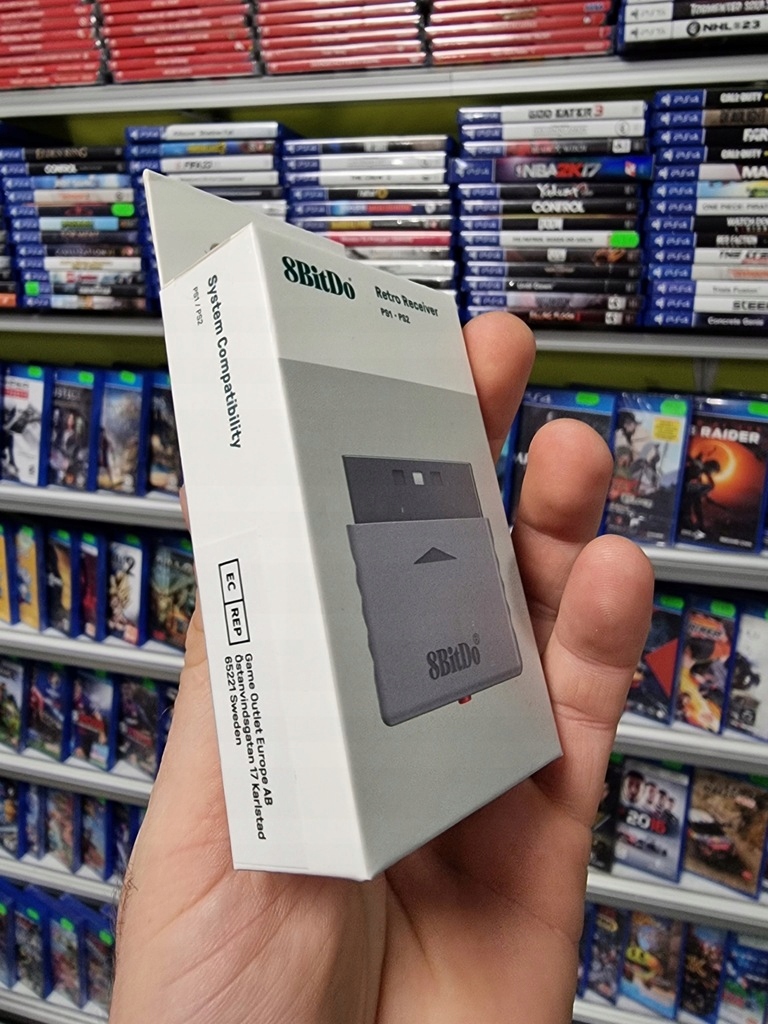 Retro Reciever — це адаптер Bluetooth, підключений до класичної консолі PSX PS2. Він дозволяє грати бездротово за допомогою багатьох моделей геймпадів Bluetooth.