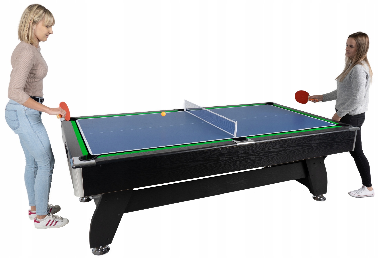У наборі ви отримаєте накладку, яка дозволить вам перетворити ваш більярдний стіл на поле для настільного тенісу та аерохокею.