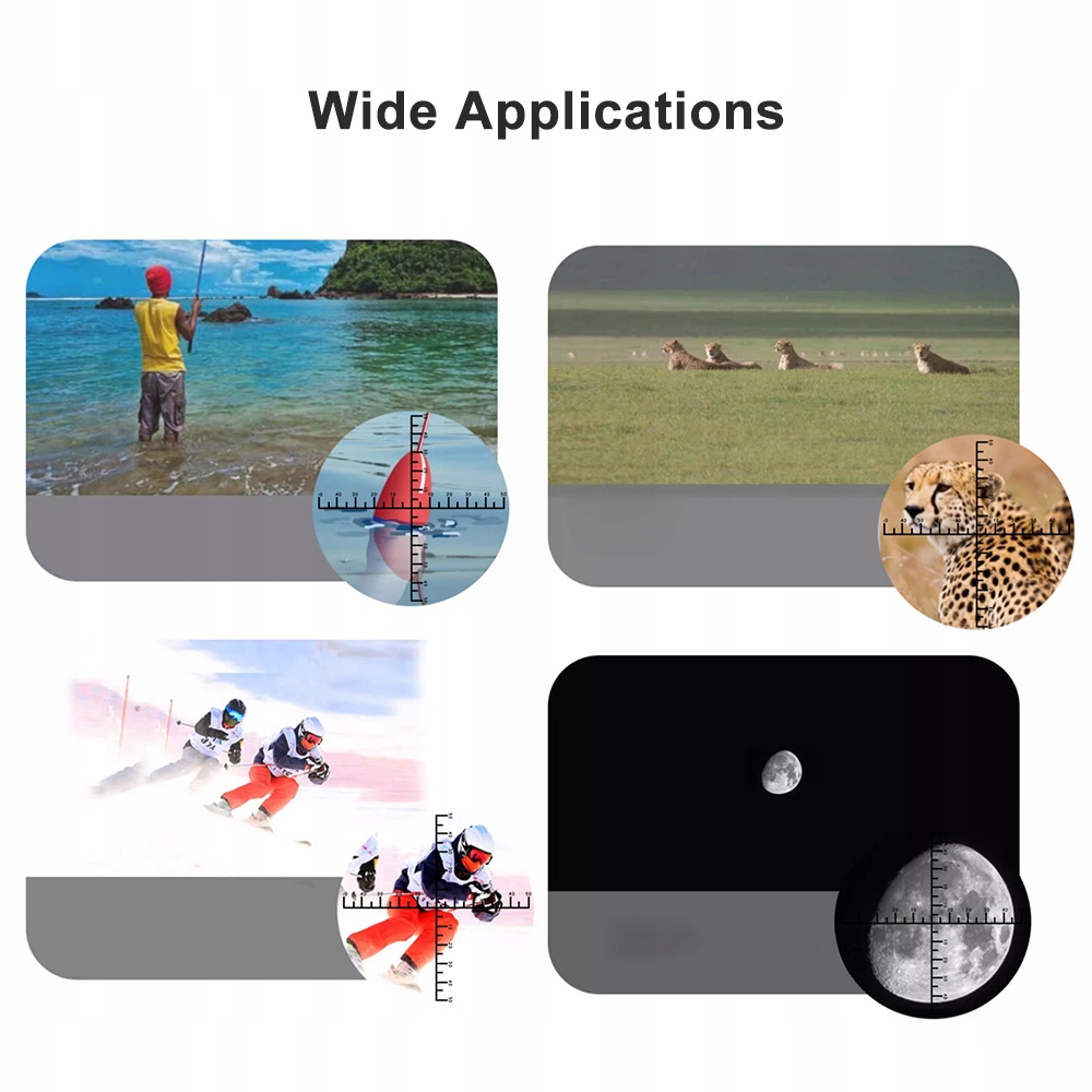 3. 【дим для оцінки відстані】 Метод монокулярного руху підтримує відстань. Ви можете спостерігати положення цільового об'єкта по відношенню до прицілів у телескопі, щоб обчислити відстань між спостерігачем та цією.