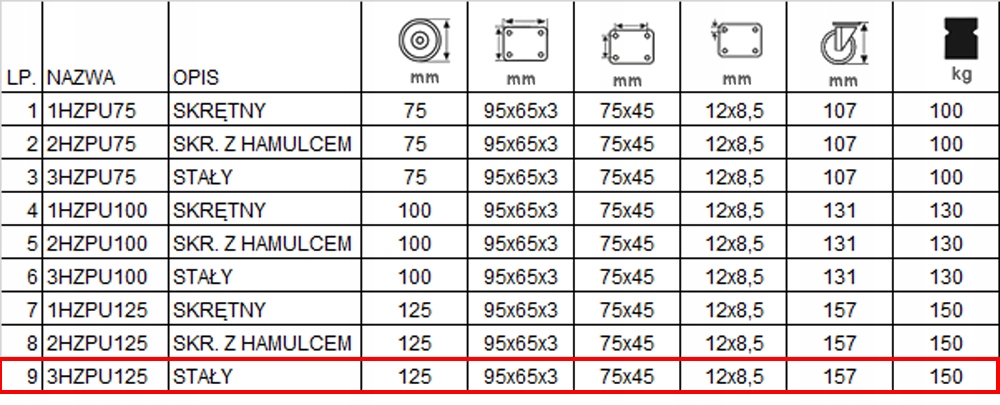 8HZPI125K2 поблизу FI 125 Swek Chaffoalting Wheel 125 мм 150 кг