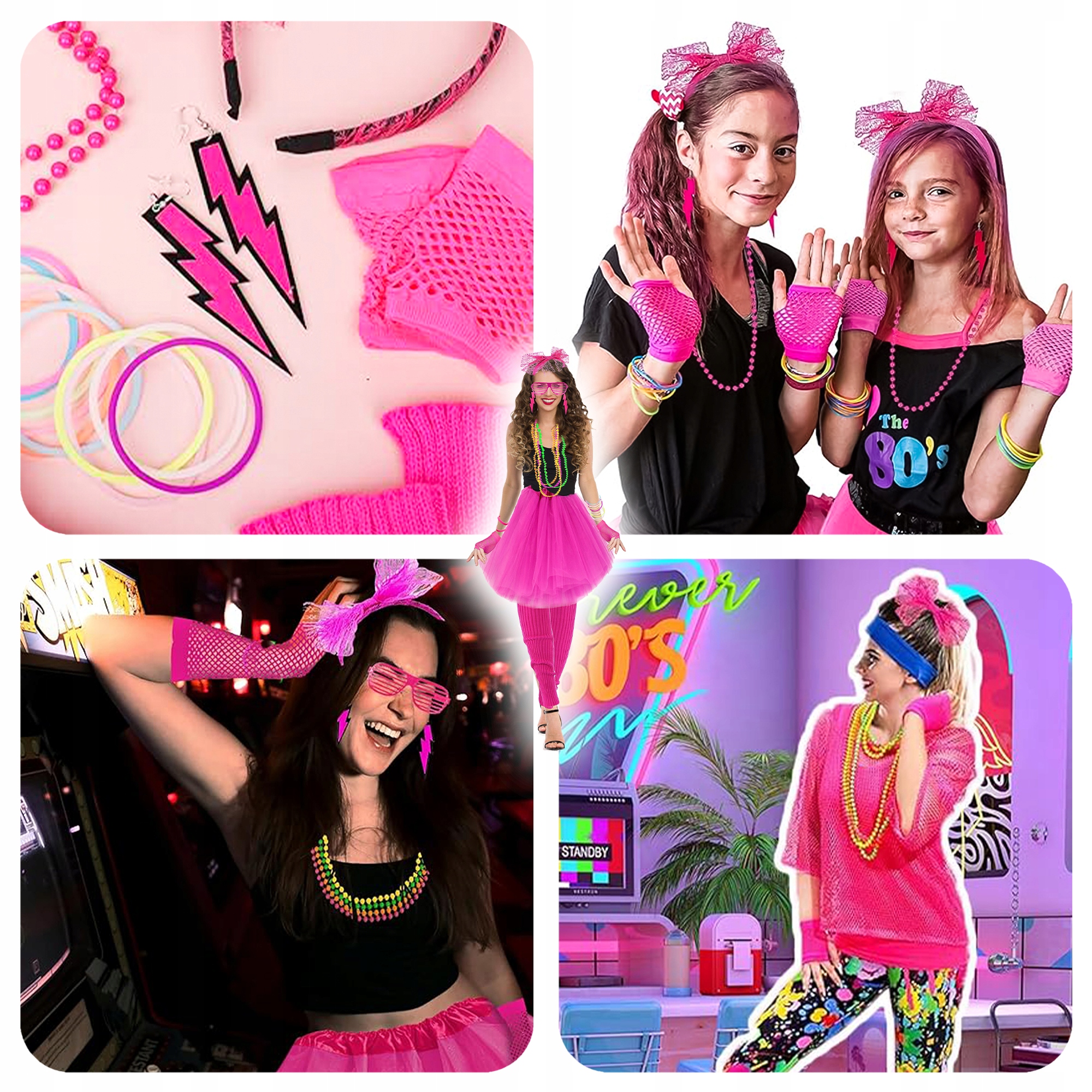 80-х 90-х 8-в-1 КОМПЛЕКТ НЕОНОВИЙ КОМПЛЕКТ ДИСКО РЕТРО СПІДНИЦЯ ВІДКРИЙТЕ ДЛЯ СПІДНИЦІ АКСЕСУАРИ
