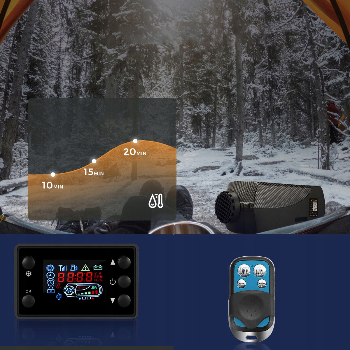 - Наші дизельні паркувальні обігрівачі оснащені інтелектуальним РК-дисплеєм і дистанційним керуванням.