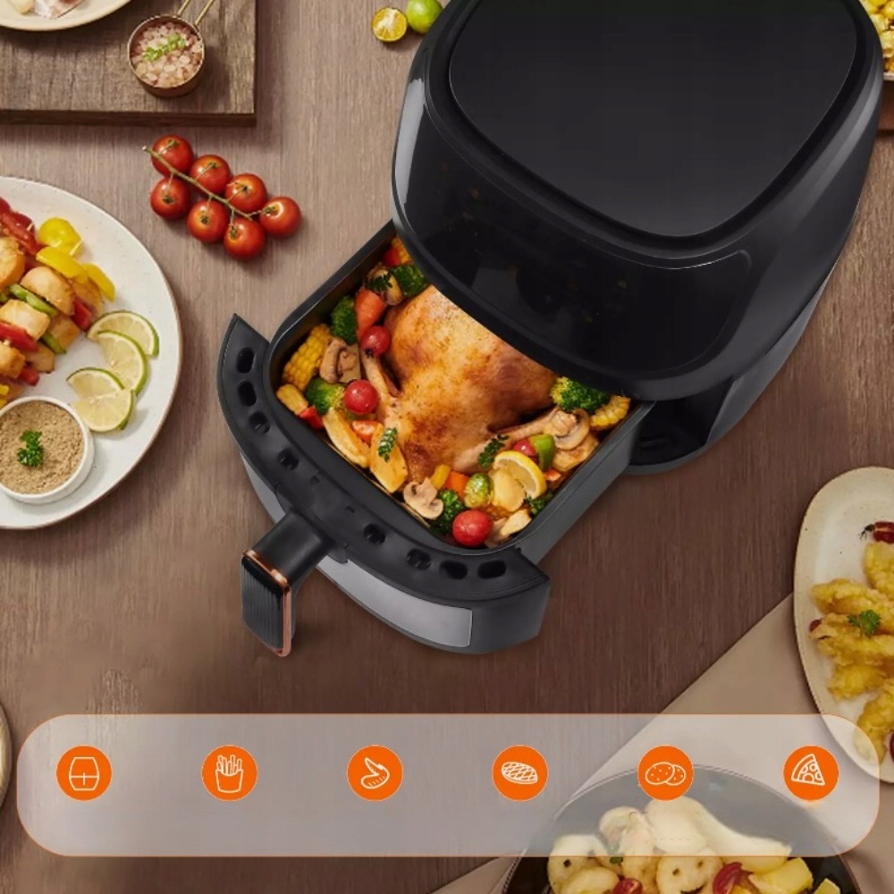 - Фритюрник повітря має систематичну структуру з інтелектуальною системою контролю температури з якістю духовки, щоб переконатися, що інгредієнти були хрусткими зовні та делікатними посередині.