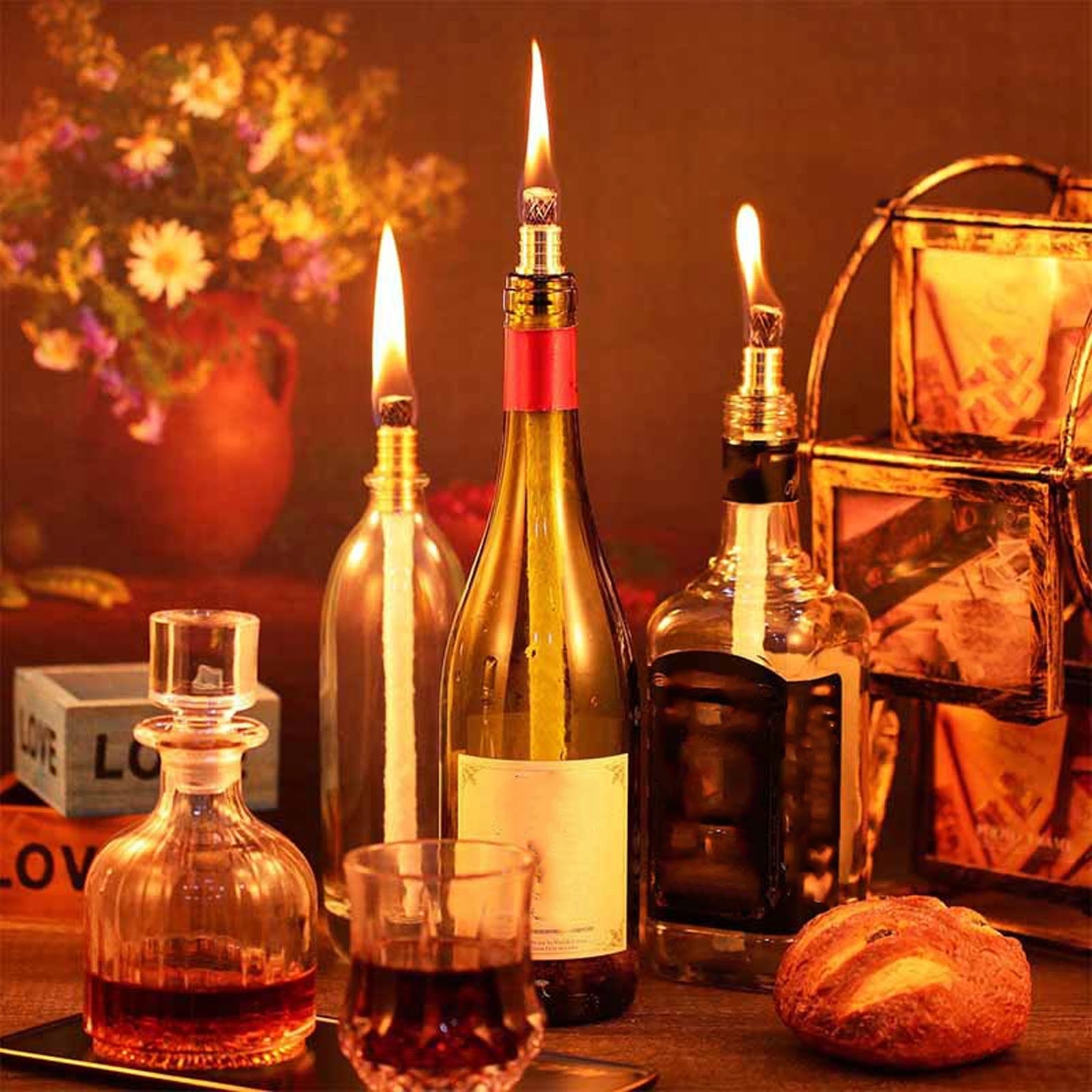 5. Повний набір: Ви отримаєте 8 латунних тримачів для ґнотів конфорок з шайбами, 8 запасних ґнотів для пальників та 8 мідних ковпачків. За допомогою простого комплекту освітлення для пляшок ви можете перетворити більшість пляшок пива чи вина на красиві світильники, створюючи унікальну атмосферу для ваших вечорів.