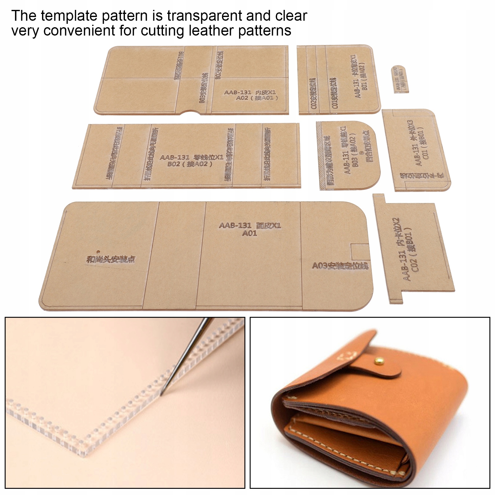 8шт акриловий шаблон короткий гаманець DIY ручної роботи зі шкіри WW