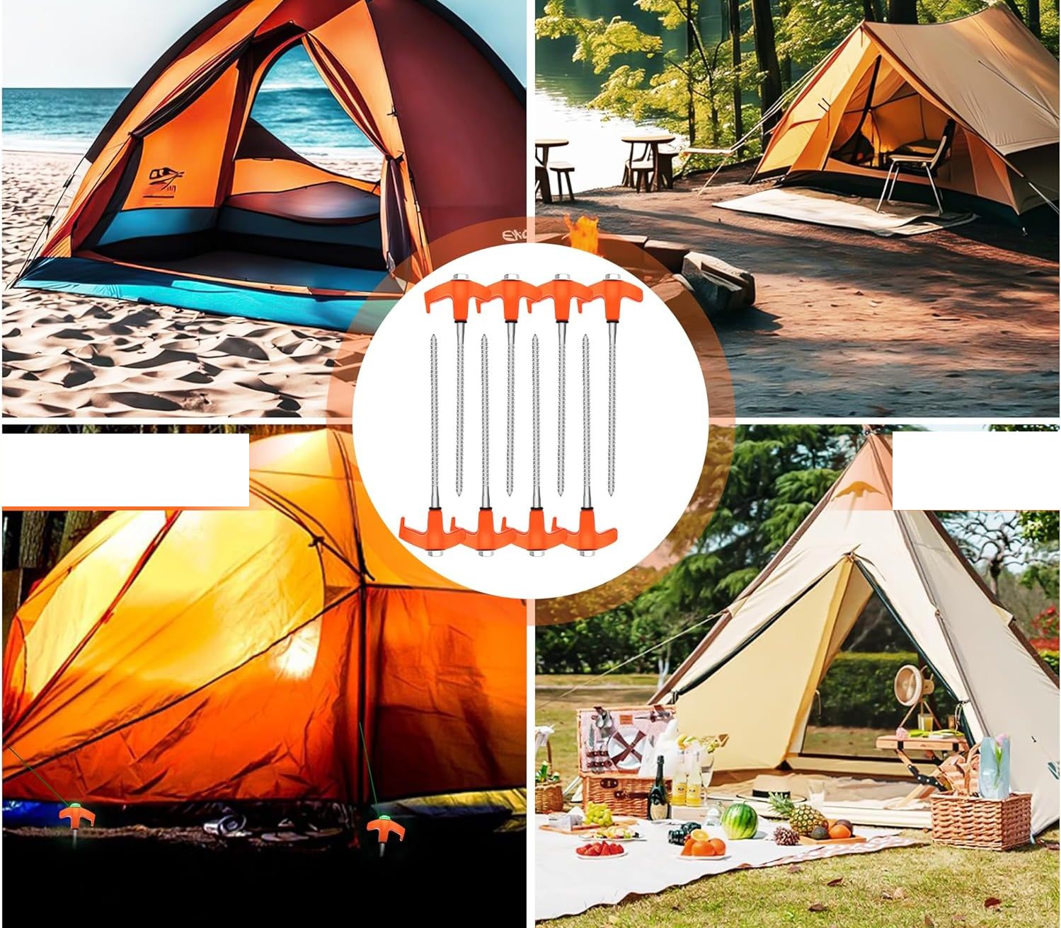 - Універсальність: ці гвинтові кілки можуть закріпити намети, павільйони, навіси, навіси, тенти, брезенти, рибальські аксесуари тощо! Важливий інструмент для любителів активного відпочинку.