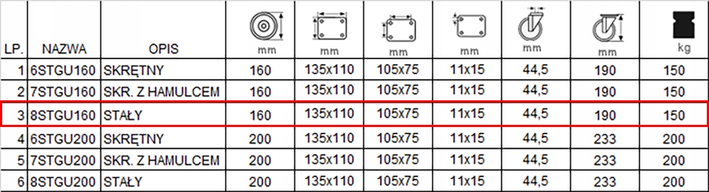 - тип колеса: STGU, підшипник голки.