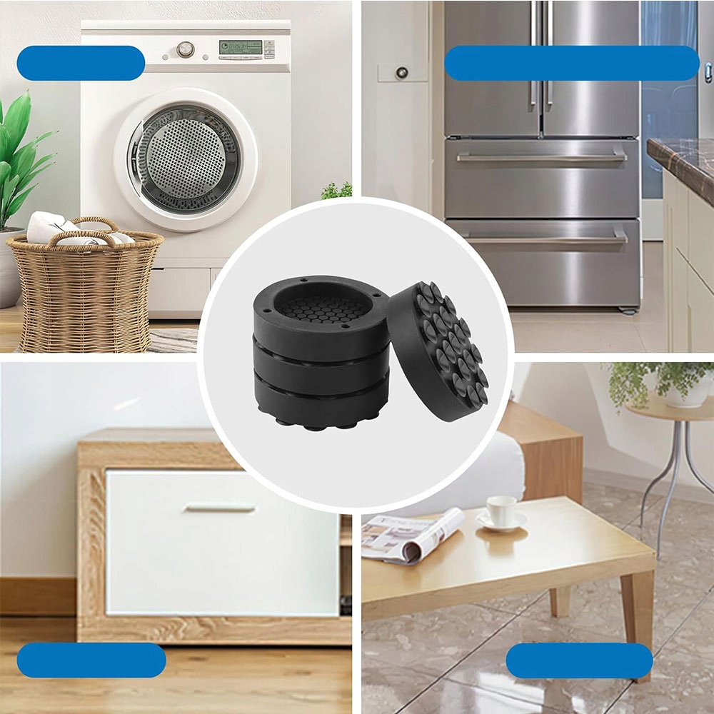 2 [Сильна конструкція адсорбції] Дно антивібраційного килимка має унікальні 19 цукрів із сильною адсорбцією. Не -скапування та антивібрація. Він сильно тримає пральну машину на місці і запобігає ковзанню пральної машини або меблів. Просто підніміть кожен кут пральної машини, просуньте колодку під кожну ногу пральної машини, а потім обережно опустіть ноги пристрою.