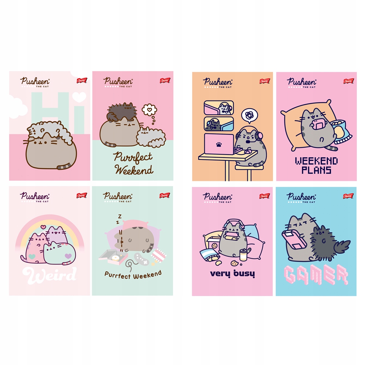 Набір із 8 зошитів із колекції Pusheen Unipap: 4x 3-рядковий + 4x сітка