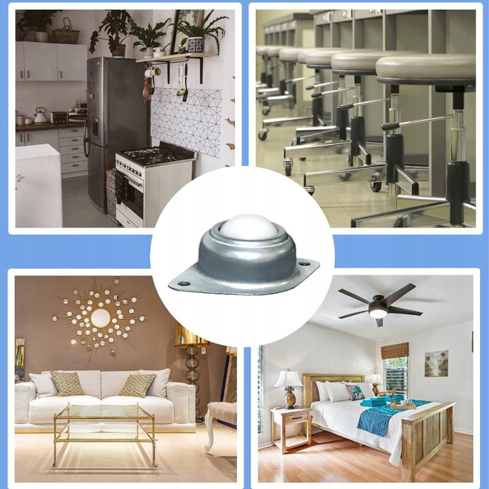 ✅【Використовується в різних випадках】: Меблеві кулькові колеса в основному допомагають транспортувати товари, які використовуються не лише в домашніх умовах, наприклад дивани, вітрини, візки, полиці, самокати, шафи та кухні обладнання, а також у таких галузях, як системи передачі, енергосистеми, системи обробки, пакувальні та допоміжні машини.