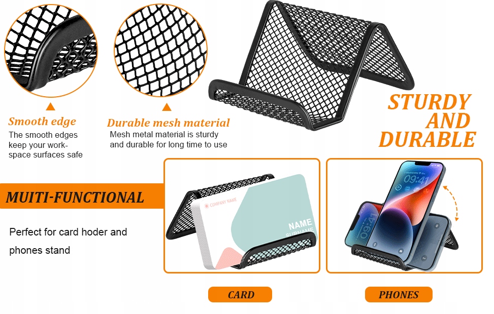 Сітчастий тримач для карток виготовлено з металу з добре пофарбованою поверхнею. Міцна конструкція зберігає хорошу форму, щоб витримати тривале використання та не деформується за важких умов.
