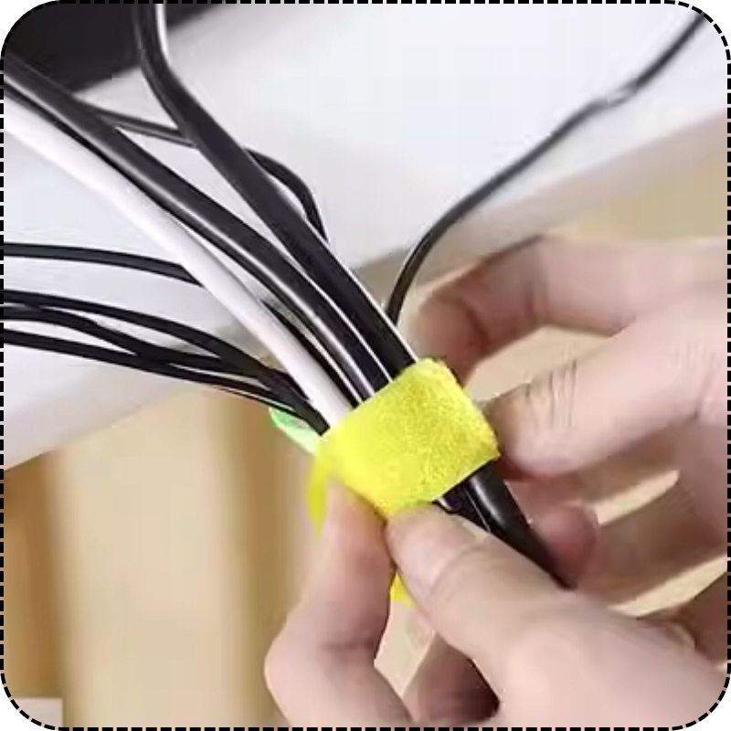 Наші стяжки на липучці — ідеальне рішення для організації кабелів у вашому домі. Ви можете легко організувати комп’ютерні, телевізійні чи зарядні кабелі, таким чином уникаючи сплутування кабелів і отримуючи естетично привабливий інтер’єр.