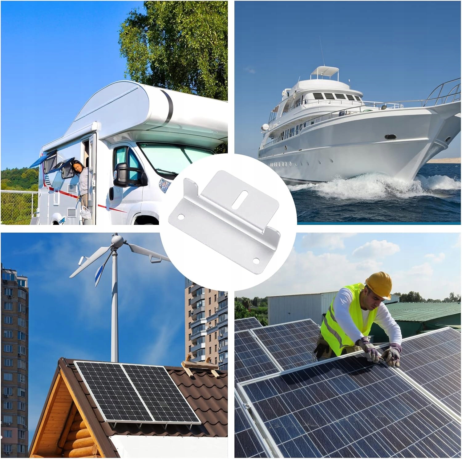 🔆🔆 Спільний матеріал з алюмінієвого сплаву: Сонячна кронштейна виготовлена з високоякісного алюмінієвого сплаву, який є міцним і довговічним, з високою міцністю та довгим життям. Він має анти -корозійні, корозійні та УФ -випромінювальні властивості і може використовуватися при високій температурі, холодній або вологому погоді. Відрегулюйте сонячну панель і краще підтримуйте панелі. Його можна легко встановити з підключеними гвинтами та гвинтами без використання інших інструментів. Підходить для встановлення сонячних модулів на яхті та плоскому даху. Він широко використовується в будинках, караванах, яхтах, будинках, плоскому даху