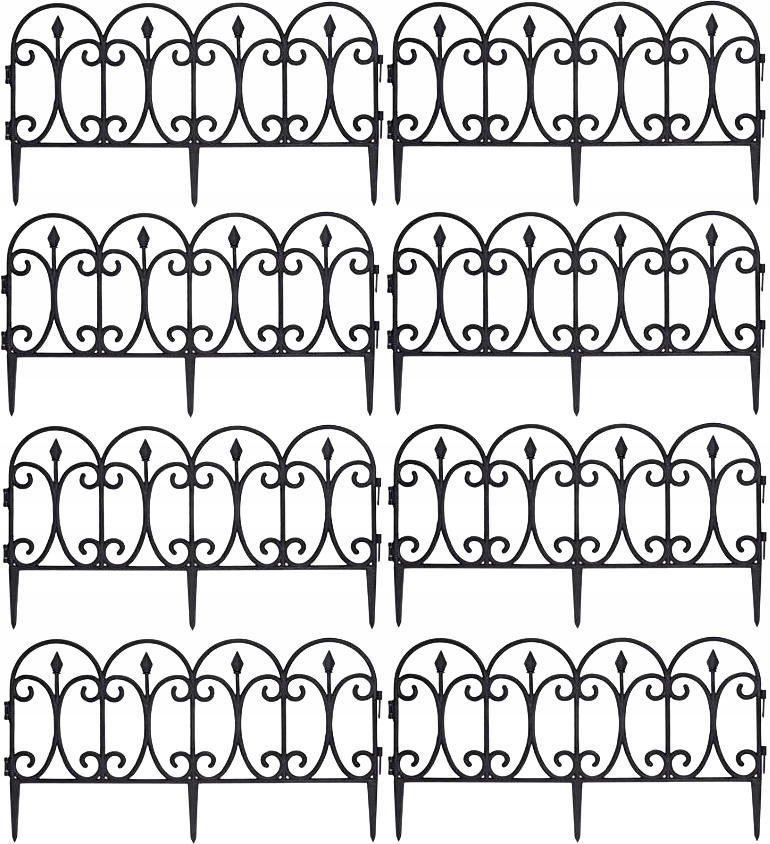 Набір, що складається з 8 частин садового частоколу загальною довжиною в зібраному вигляді 480 см. Один садовий паркан має розміри 60 х 33 см. Надзвичайно міцний виготовлений з високоякісного чорного пластику. Ефектно виглядає в саду. Своєрідним бордюром для рослин стане декоративна садова огорожа. Стійкий до погодних умов, він буде гарною прикрасою в саду на довгі роки.