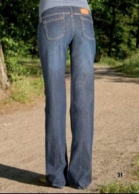 відображення класичних джинсів у виданні "вагітності". Встановіть штани, виготовлені з дуже гнучкої бавовняної тканини, "росте з животом", яку можна носити на шлунку, або підняти під шлунок (також таким чином штани можна носити після вагітності).