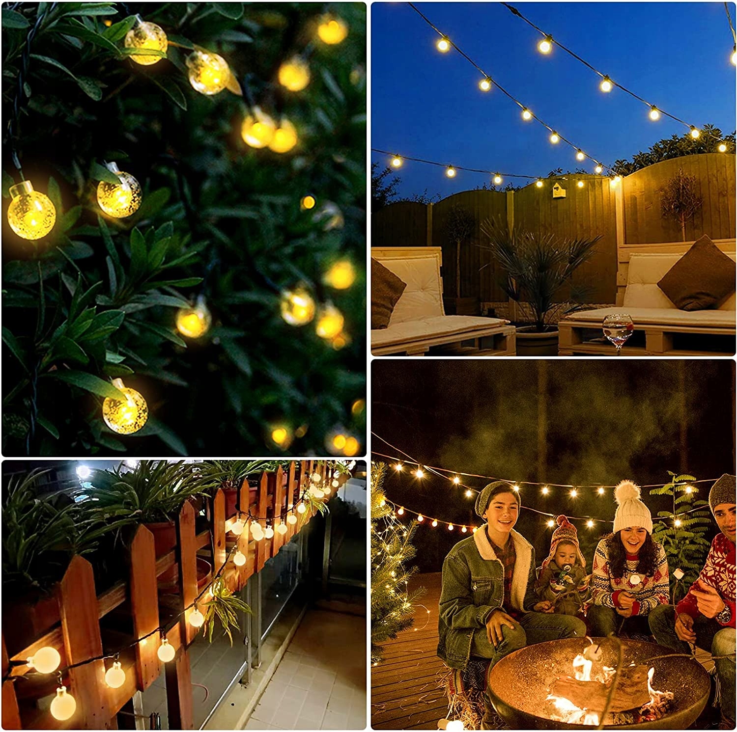 (2) Підходить для внутрішнього та зовнішнього оформлення. Ці чудові лампочки освітлюють ніч, додають теплу та чарівну атмосферу вашим садам, патіо, галявині, веранді, подвір’ю тощо.