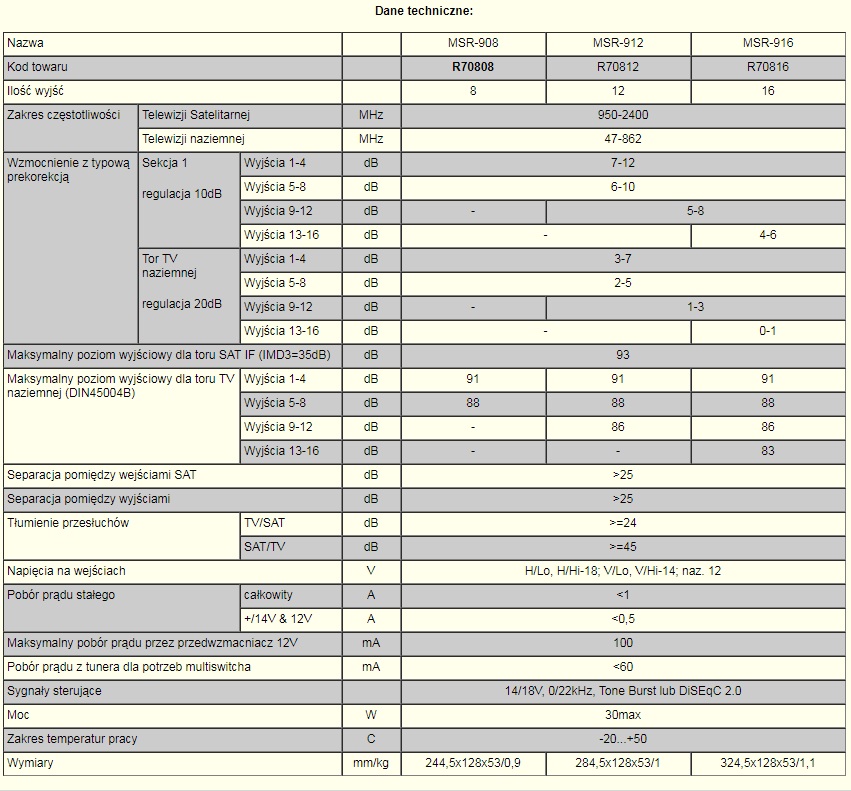 Мультисвітчі призначені для малих (4-16 розеток) і середніх (17-70 розеток) установок з розподілом сигналів проміжної частоти SAT і сигналів ефірного телебачення. Мультисвічі призначені для роботи всередині будівель.
