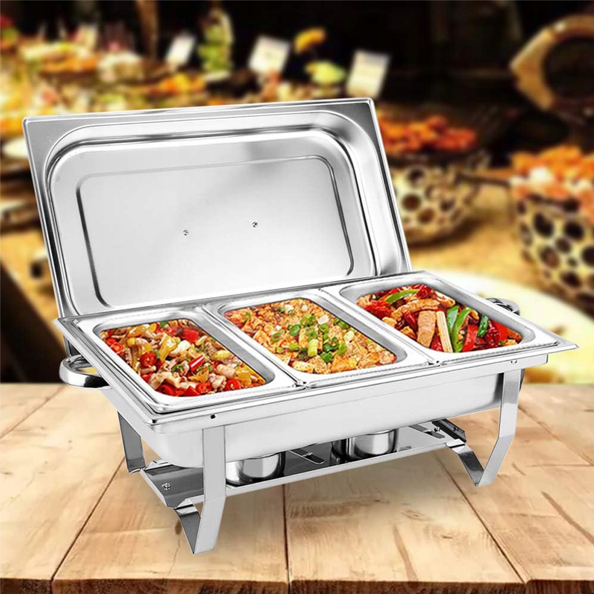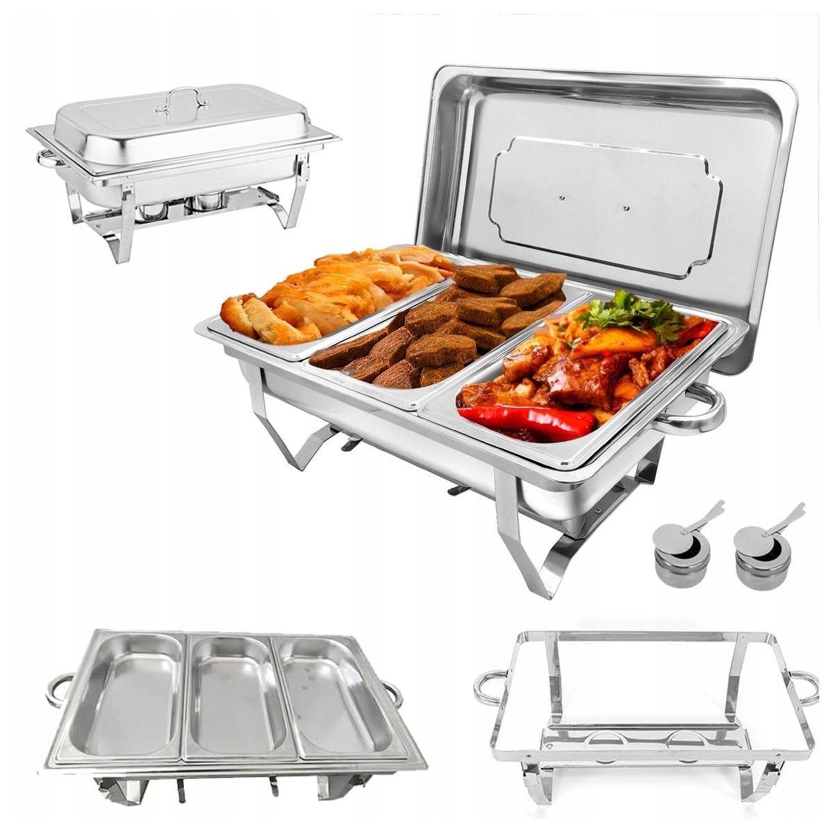 Підогрівач з нержавіючої сталі, 9 л. Набір контейнерів для підігріву зі складними ніжками для фуршетів і вечірок