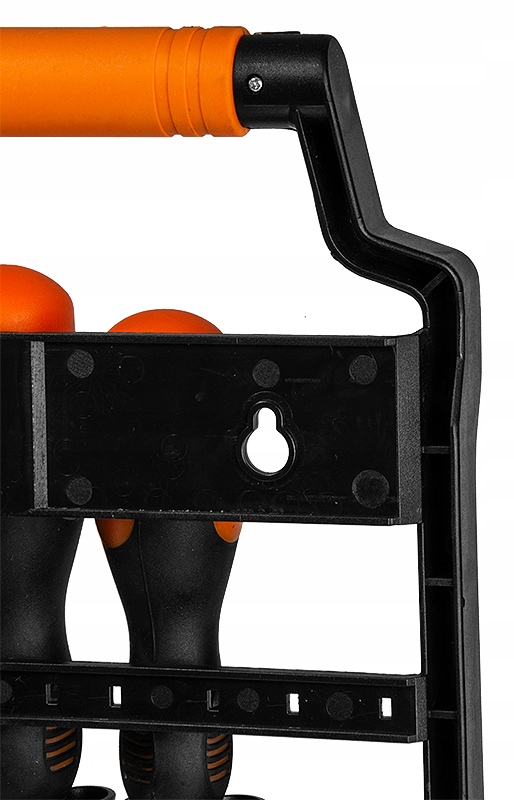 - Крім того, підвіска має неслизьку ручку для транспортування та отвори, які дозволяють повісити її на стіну, наприклад, у майстерні.