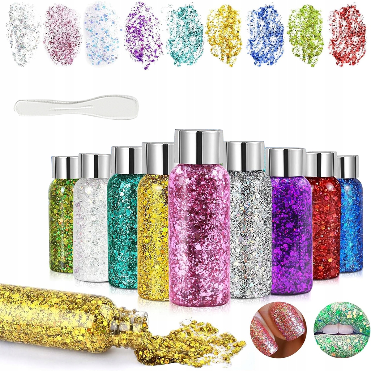 ⭐️⭐️⭐️⭐️⭐️Фестивальний блиск для обличчя та блиск для тіла - 9 флаконів Гель для тіла з ложками, густий блиск для карнавалу, фестивалю, маскараду та макіяжу⭐️⭐️⭐️⭐️⭐️