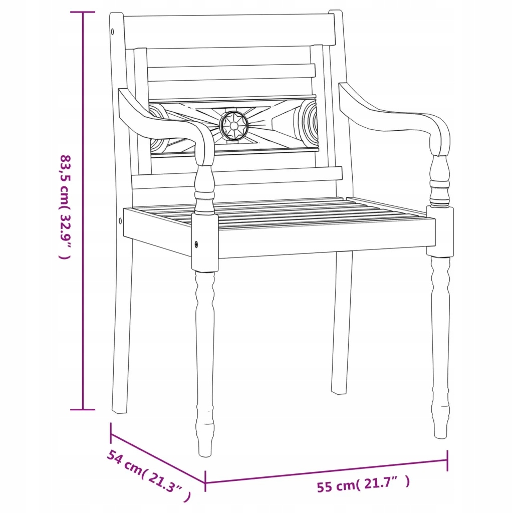 Насолоджуйтеся приємною їжею або післяобіднім чаєм на відкритому повітрі з цим набором садових дерев’яних меблів Batavia! Завдяки витонченим округлим підлокітникам і декоративному різьбленню, цей набір садових меблів стане центром вашого саду чи тераси!