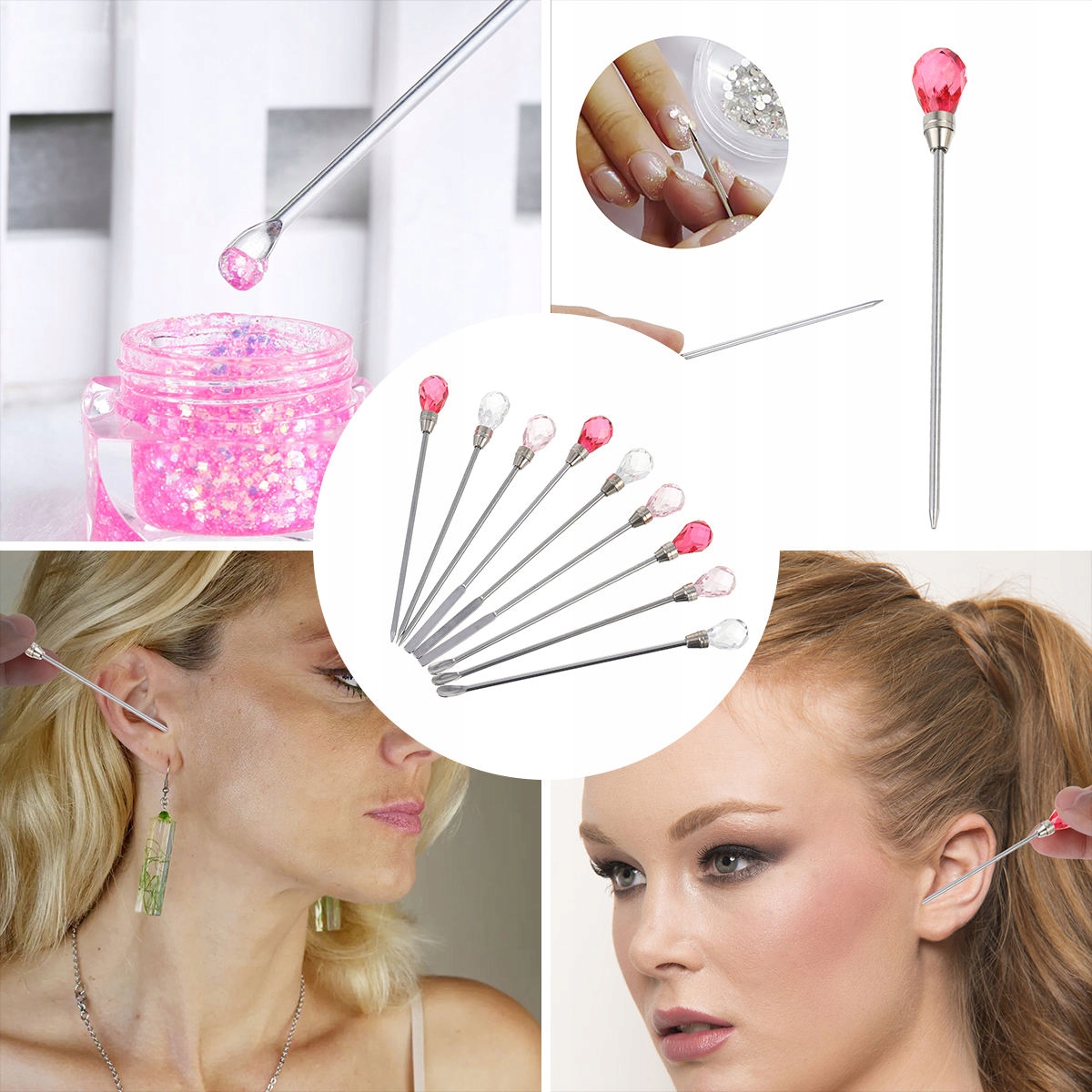 9 ШТ. МЕТАЛЕВІ ТА ПЛАСТИКОВІ МІШАЛКИ / ШПАТЕЛІ ДЛЯ ДЕКОРАЦІЇ НІГТІВ