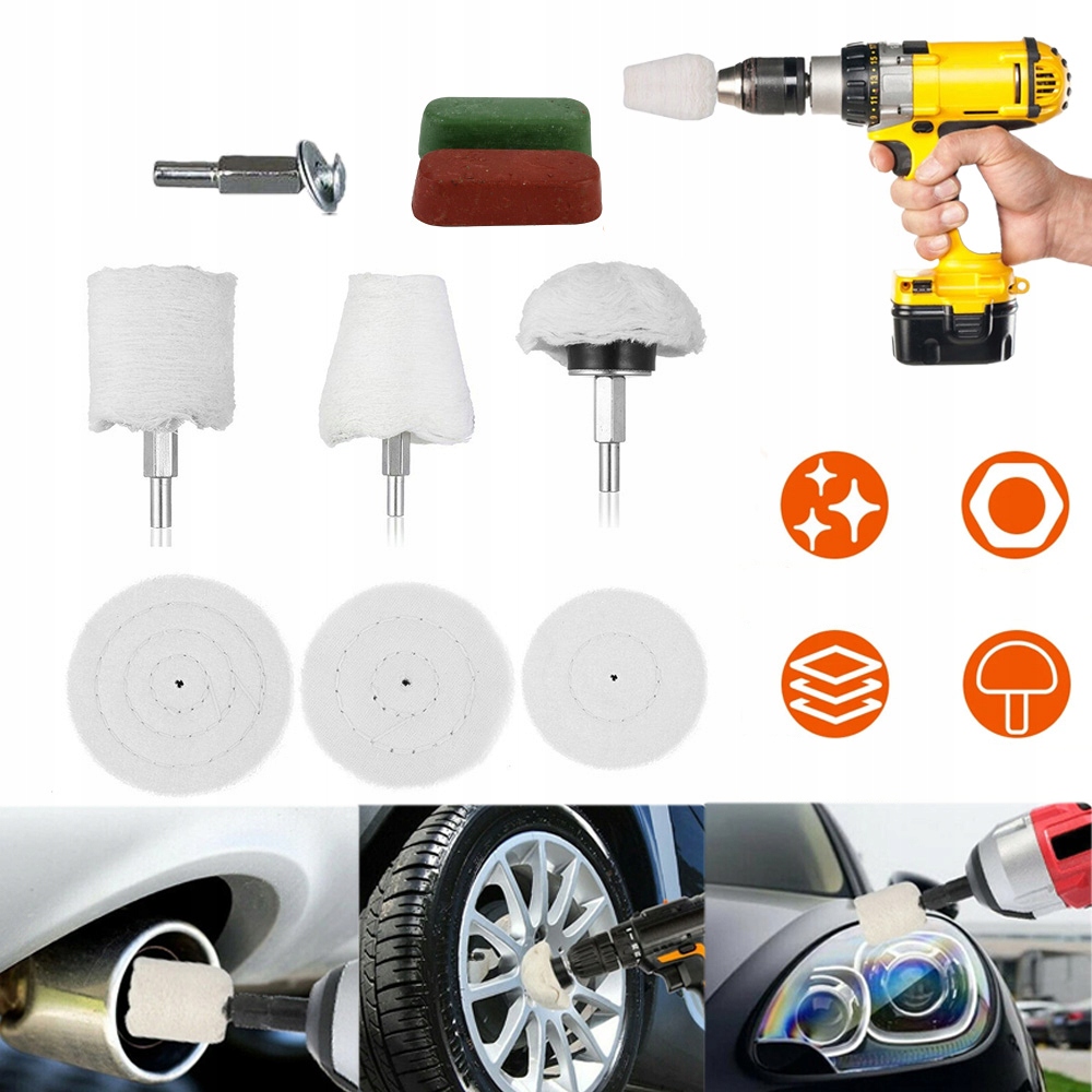 Хороша робота та висока якість: колеса швабри зроблені високої якості, зроблені з кількох шарів тканини, полірувальні подушечки дуже м’які та мають різну форму, край шарів тканини оброблений, що ідеально підходить для полірування вицвілих коліс та колекторів, немає подряпини під час полірування та не пошкодить поверхню ваших меблів чи фарби автомобіля.