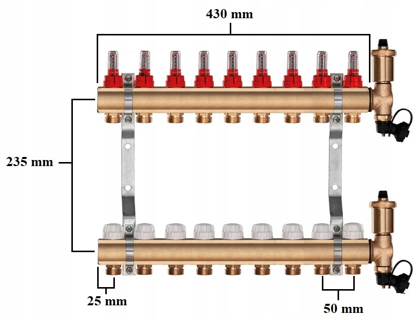 ✅ латунні ніпелі (така ж кількість, що й кількість контурів x2)