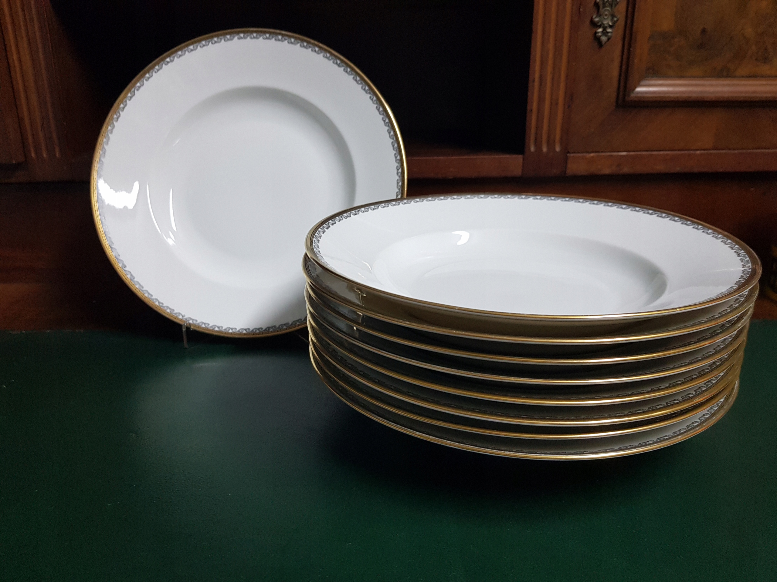 Предмет аукціону - 6 супових тарілок від Tettau Gold, чорне скло по краю.