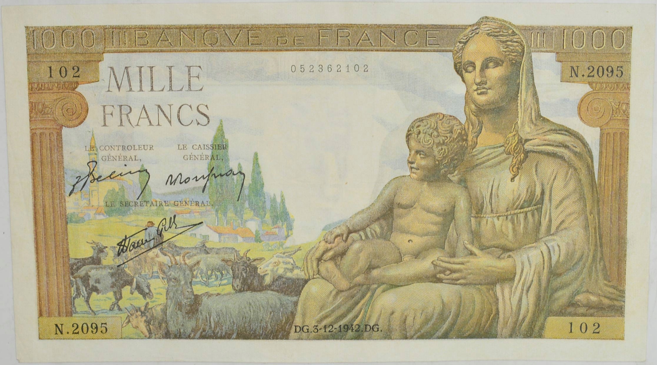 9.db.Francja , 1000 франків 12.03.1942, St.2/3+
