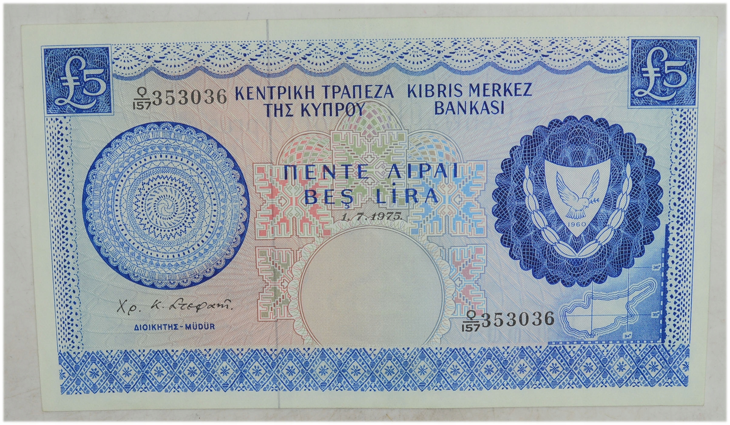 9.fu.Cypr , 5 фунтів 1975 рідкісний, P.44.c , St.2