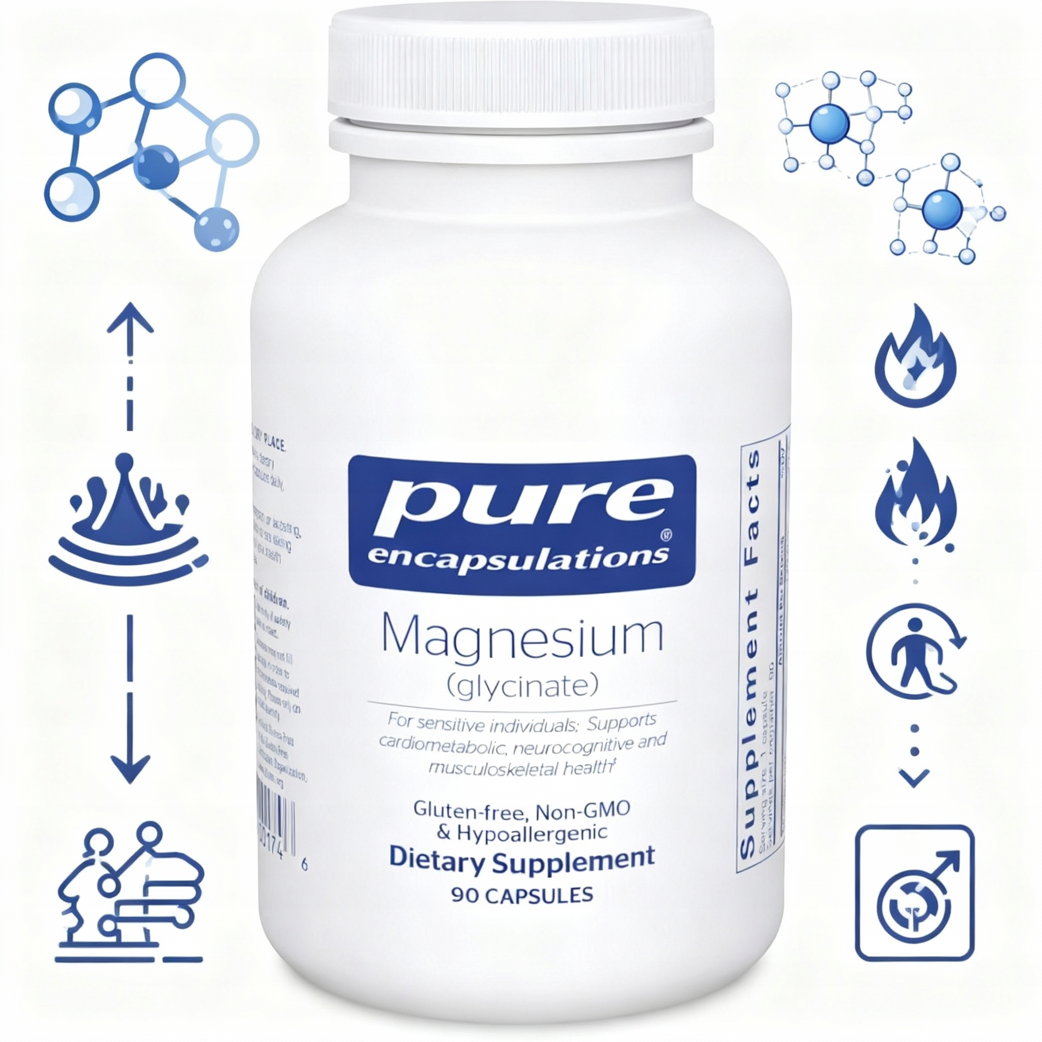 Загальний стан здоров’я та метаболізм поживних речовин: ця добавка з гліцинатом магнію сприяє метаболізму та використанню вітаміну B6, вітаміну C, вітаміну E тощо. щоденне споживання магнію
