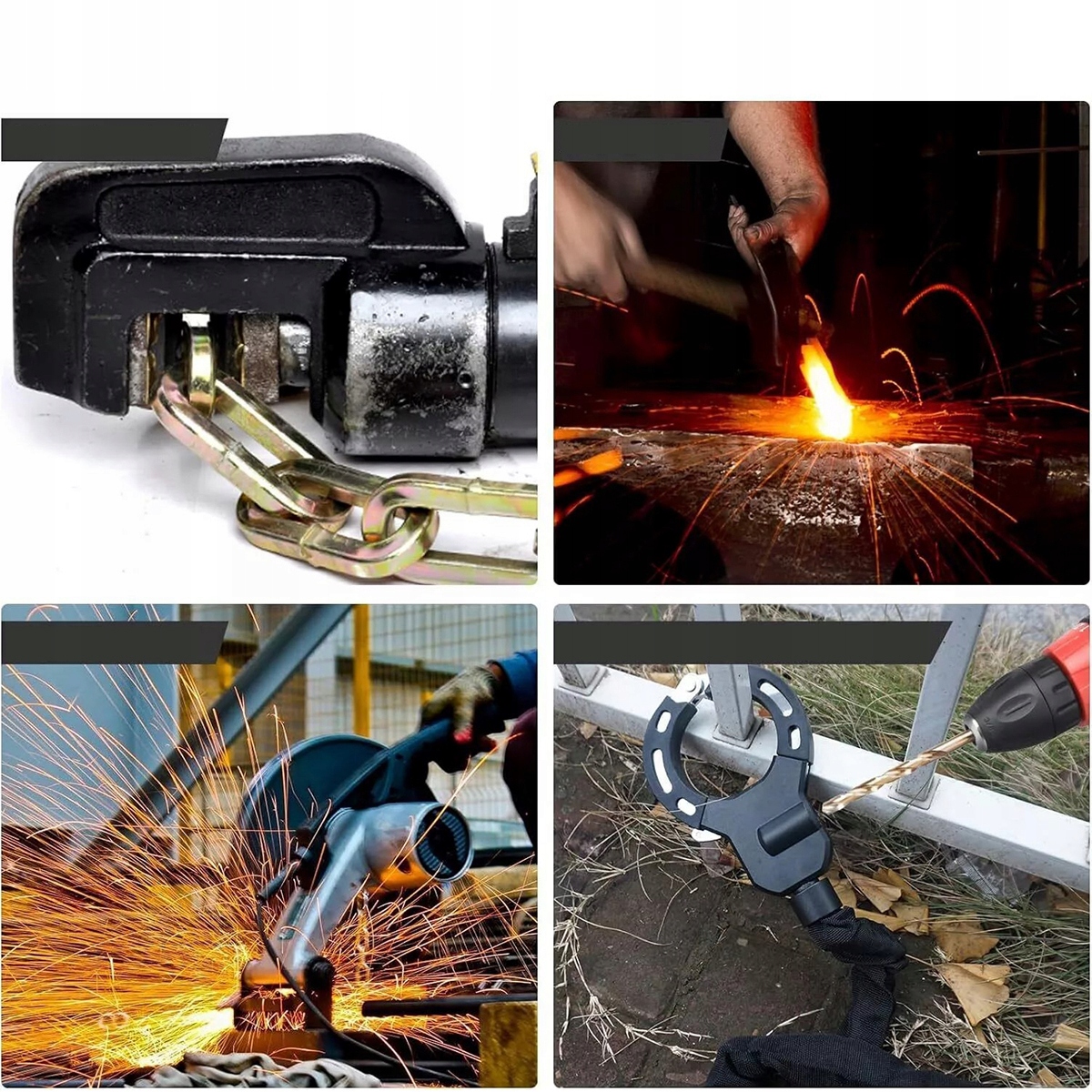 ручний замок виготовлений із загартованої сталі, загальна довжина замка ланцюга становить (приблизно) 90 см, а довжина частини ланцюга - (приблизно) 50 см. Наш ланцюг - це квадратний ланцюг з розміром 8 мм * 8 мм, виготовленого з спеціальної сталі, що в 10 разів сильніший за гірші круглі ланцюги! Ідеально підходить для електричних скутерів, електричних велосипедів, велосипедів та сходи, дитячих колясків, мотоциклів, огорож та інших.