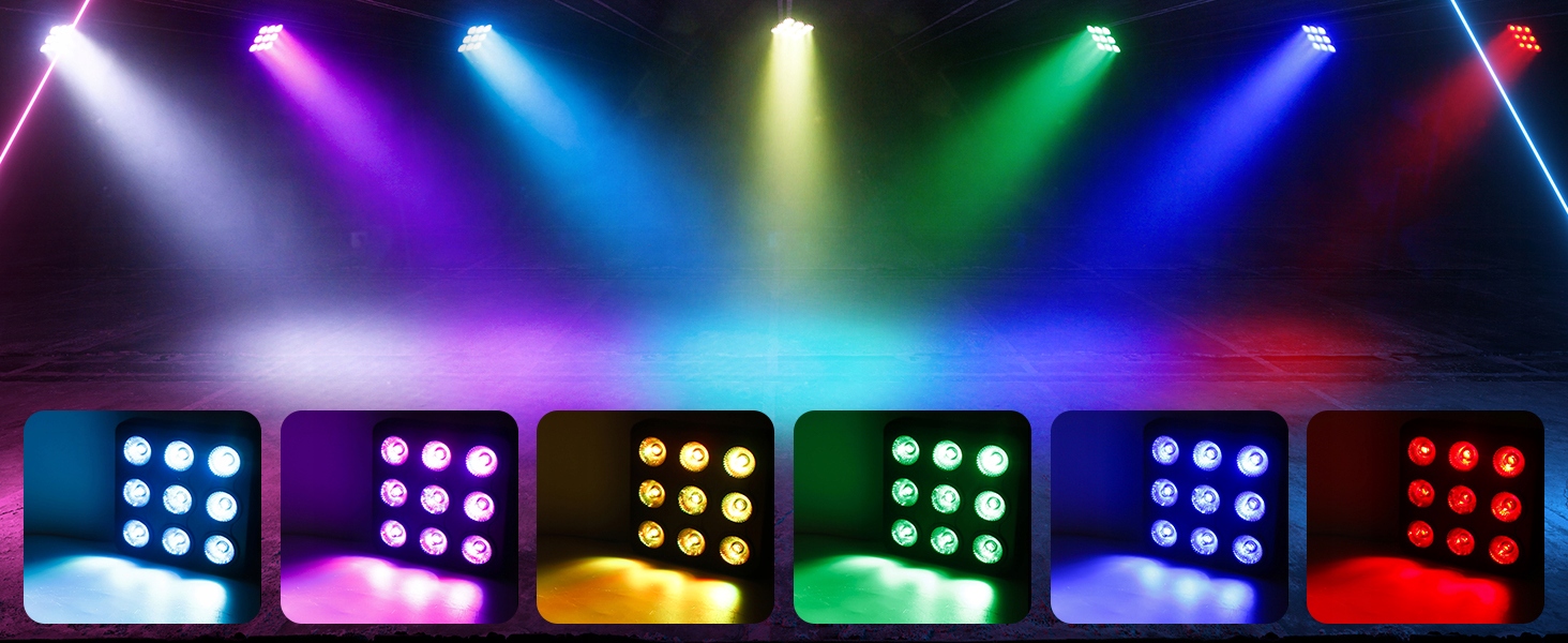 Потужні лампи PAR - Світлодіодне освітлення DazzlingStage PAR використовує потужні джерела світлодіодів, включаючи 9 світлодіодів потужністю 10 Вт. Крім того, лампа сцени виготовлена з литого алюмінію. Вбудована система повітряного охолодження, що розсіює тепло і забезпечує чудову стабільність, гарантує тривалий термін служби. Термін служби світлодіодного освітлення становить понад 100 000 годин. Освітлення Wash з нескінченним змішуванням кольорів RGBW і ефектом веселки гарантує незабутні враження.