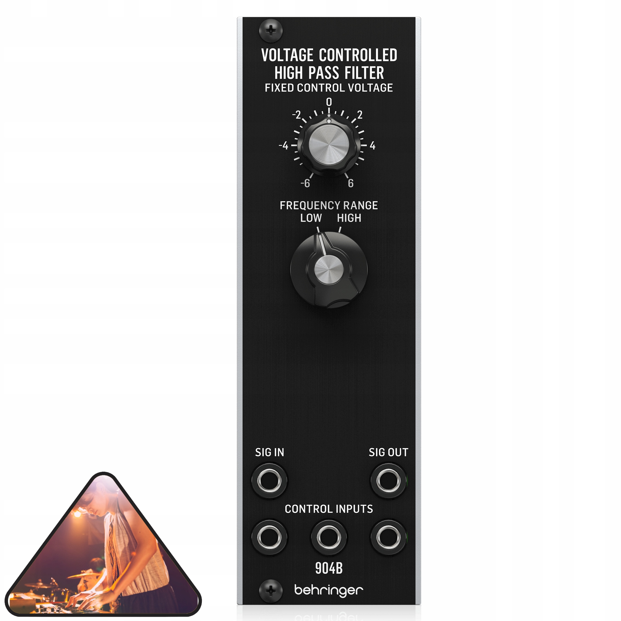 Фільтр високих частот 904B VOLTAGE CONTROLLED дозволяє послабити низькі частоти та підкреслити вищі частоти в сигналі. З фіксованою контрольною напругою ручка, також відома як частота зрізу, визначає частоти, які ослаблені нижче певної точки. Перемикайте частотний діапазон між низькими (4 Гц - 20 кГц) і високими (10 Гц - 50 кГц), щоб вибрати частоти, на які впливає фіксована гучність. Ви можете використовувати 904B, щоб прорізати мікс для пекучих звуків свинцю, або поєднати його з фільтром низьких частот Behringer 904A VOLTAGE CONTRLED і бути готовим почути дуже цікаві звуки.