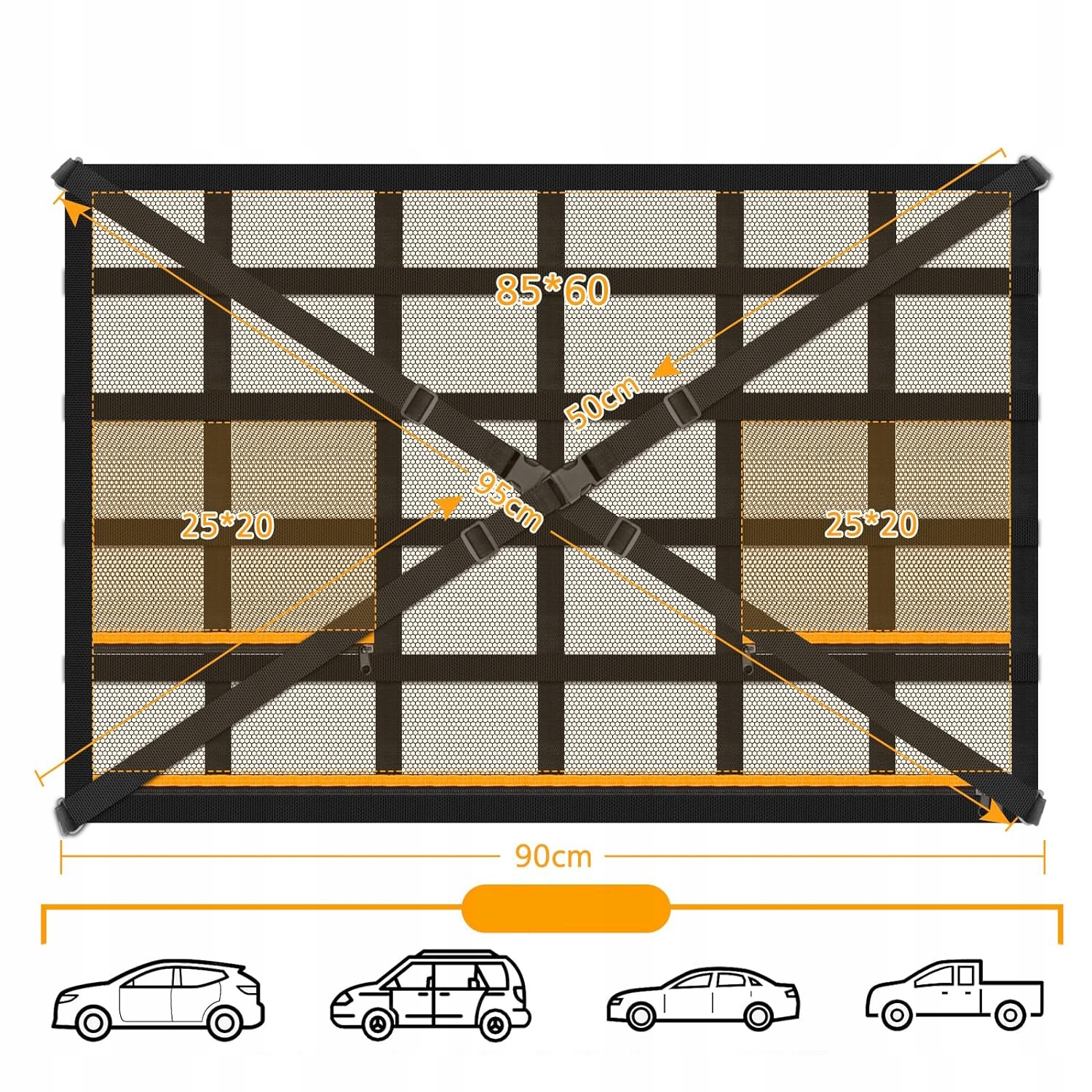 90*65 CM WYTRZYMAŁY SIATKA DO PRZECHOWYWANIA Z 2 HAKI GENERAŁ SAMOCHODOWY
