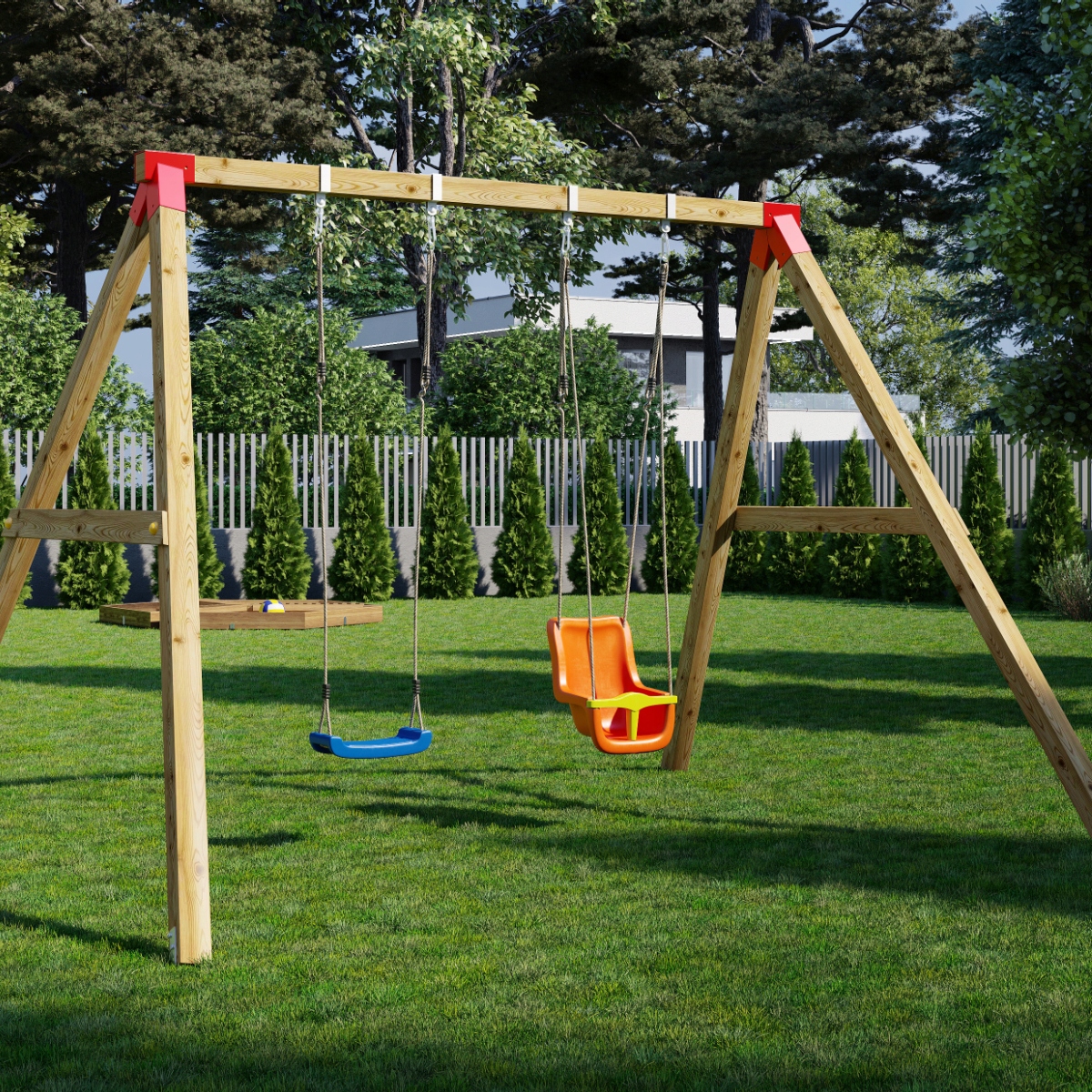 Ми використовуємо найвищої якості матеріалів для виробництва наших роз'ємів. Сталь товщиною 2 мм і захищена фарбуванням порошком. Це робить його стійким до погодних умов. У поєднанні з якорями до землі та підвісками для гойдалки (доступні на наших інших пропозиціях) Ви створите безпечний простір для своїх дітей.