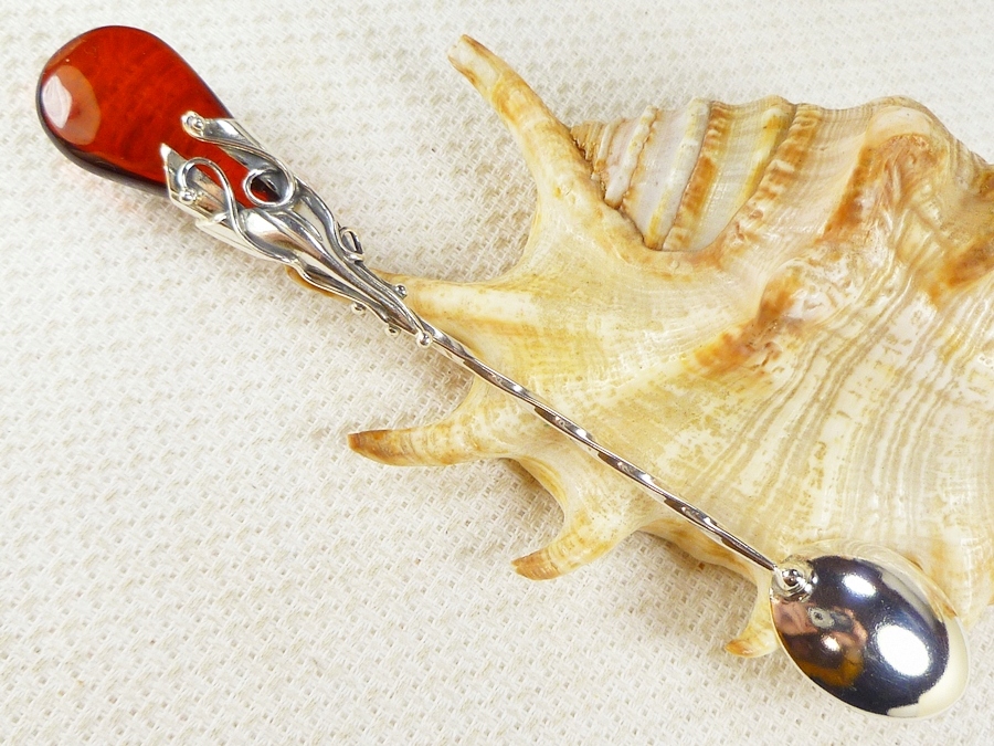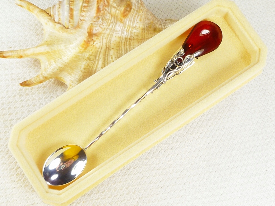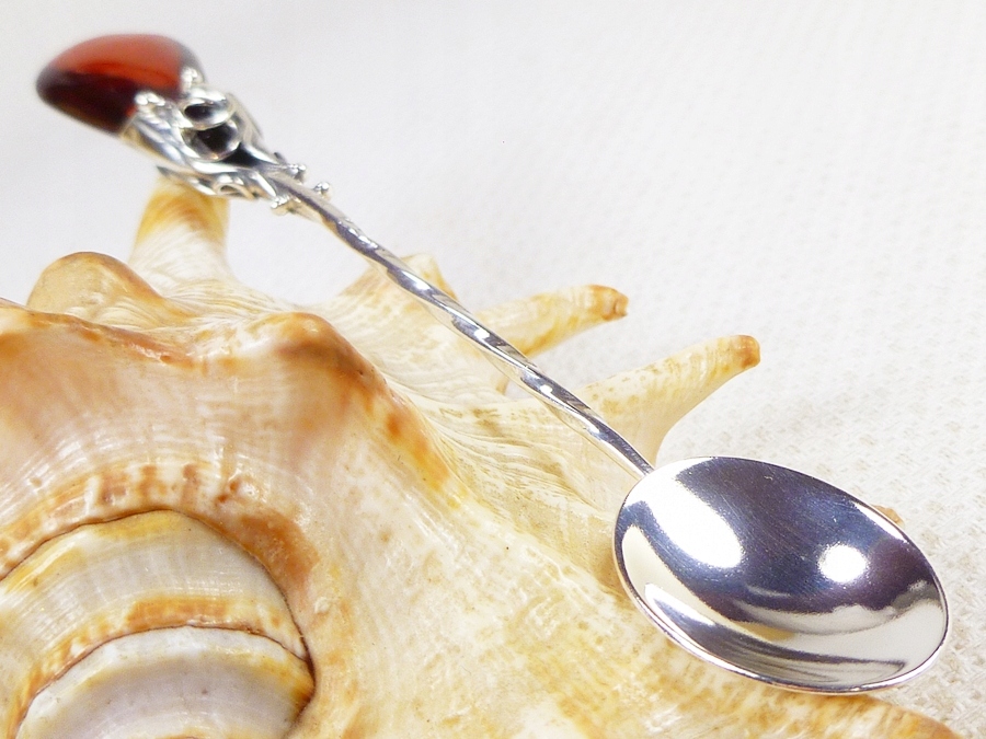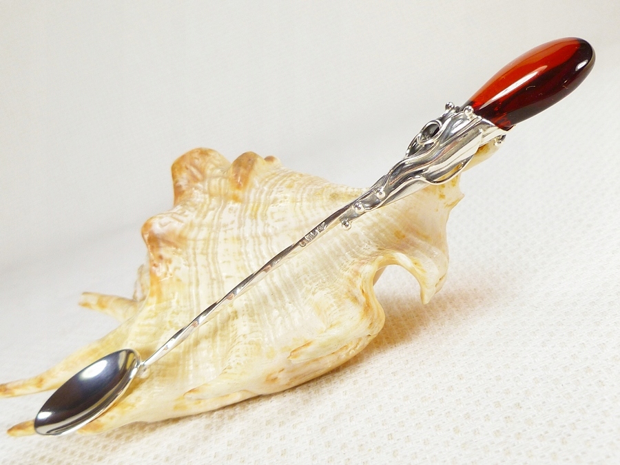 912-19 Срібна ложка з бурштином -HAND MADE-