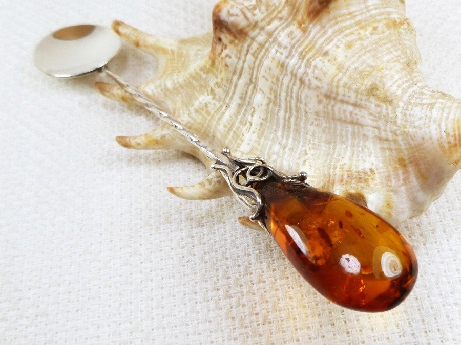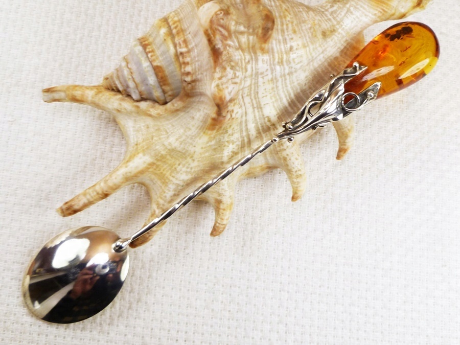 914-17 Срібна ложка з бурштином -HAND MADE-