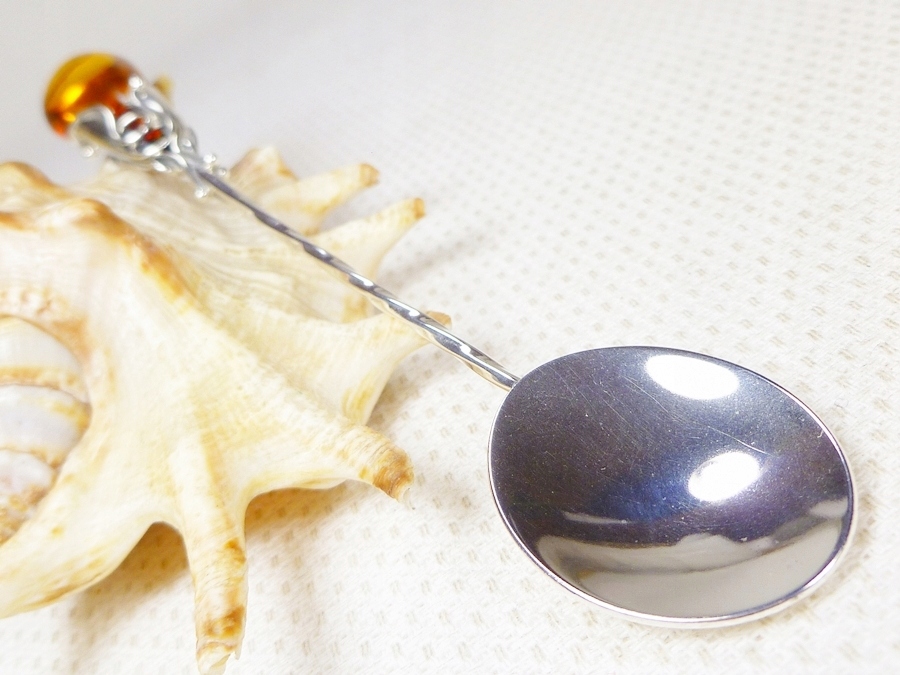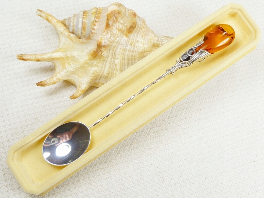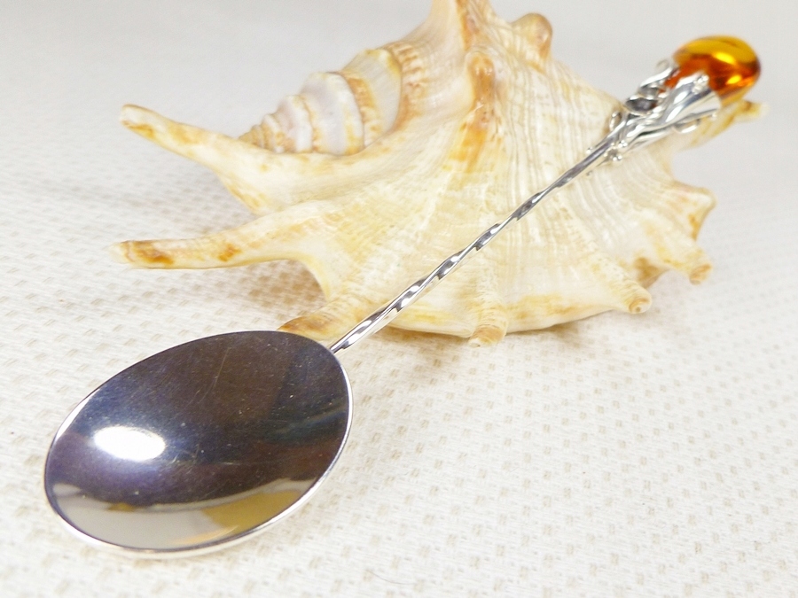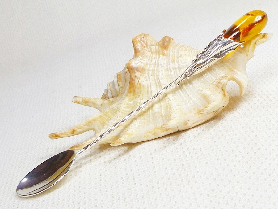 914-8 Срібна ложка з бурштином -HAND MADE-