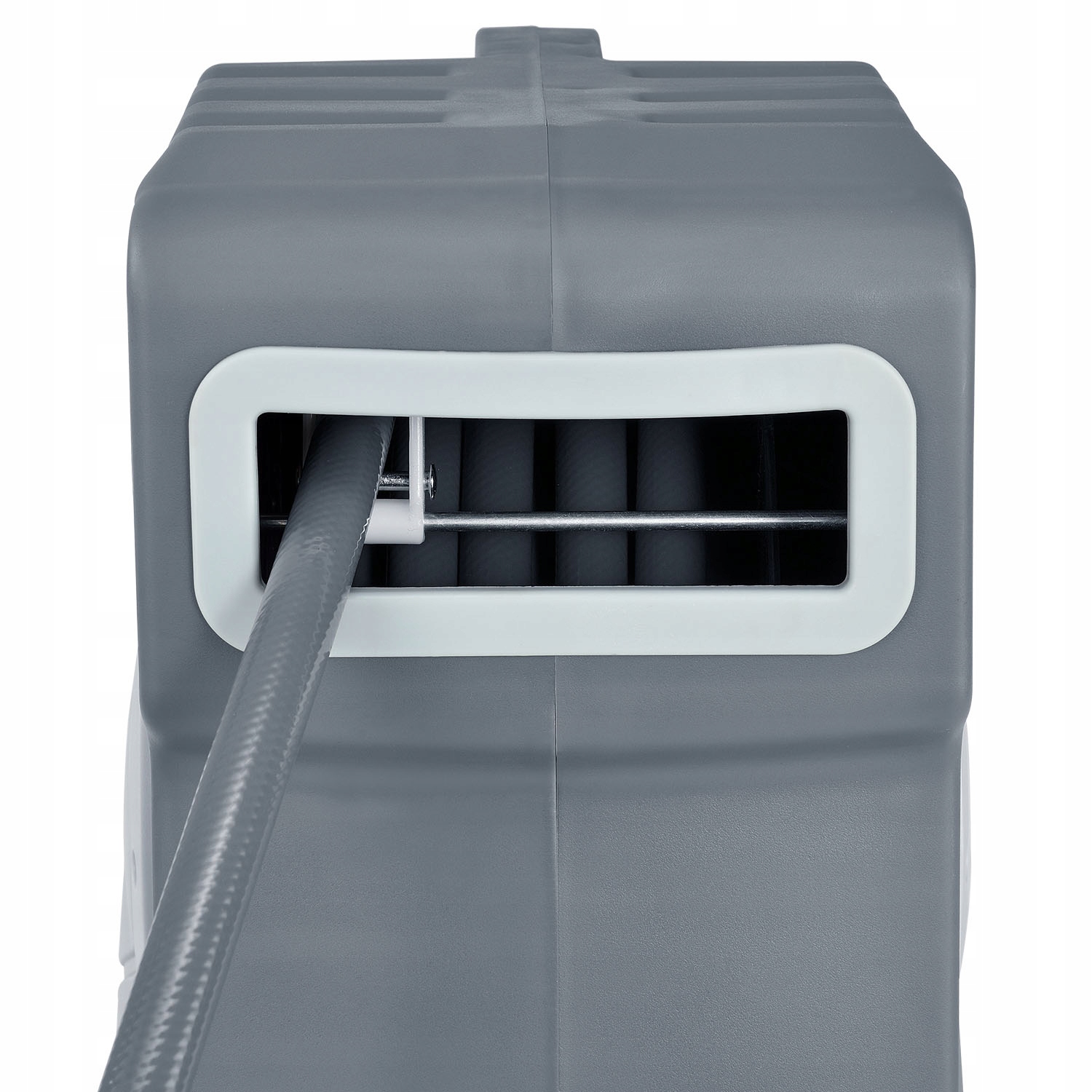 Котушка для шланга складається з корпусу розміром 48 × 16 × 34,3 см, виготовленого з поліпропілену. Матеріал міцний і стійкий до ультрафіолетового випромінювання. Завдяки цьому він витримує навіть складні умови.