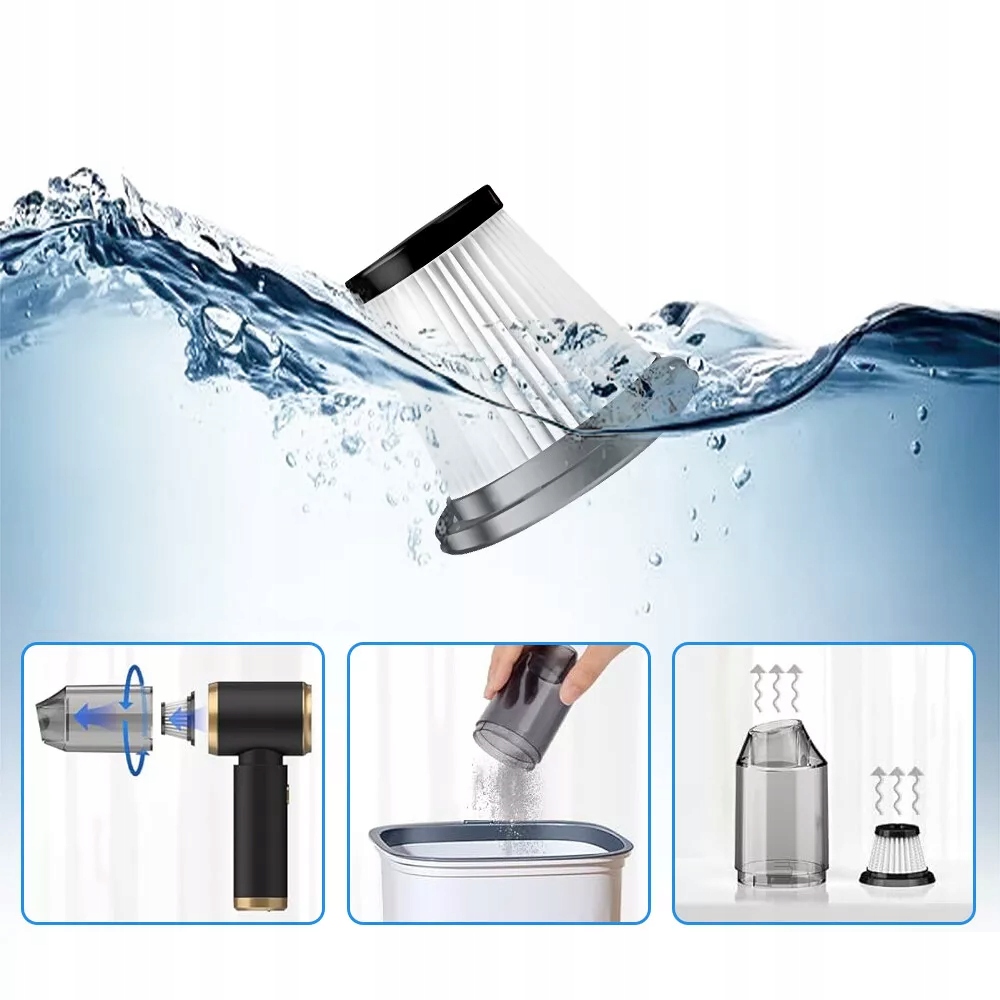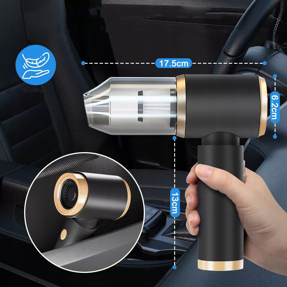 ідеально підходить для будинків та офісів. Цей вакуумний очищувач бездротового автомобіля оснащений вдосконаленим двигуном високої швидкості, що забезпечує всмоктувальну потужність 95000pa і дозволяє очистити волосся, крихти, пил та пісок, прихований у кріслі автомобіля або дивані.