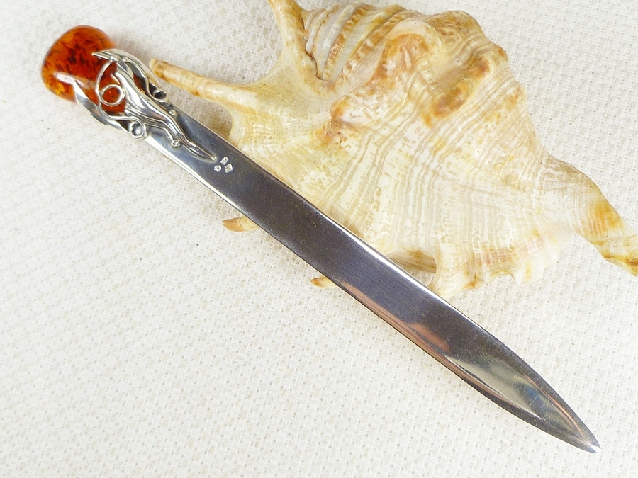 952/16 Ніж срібний з бурштином -HAND MADE- 15 см