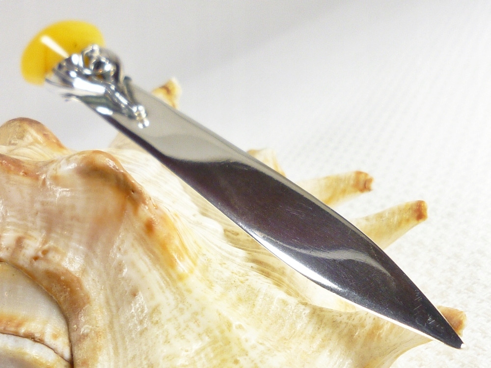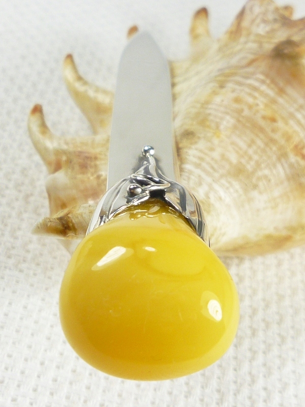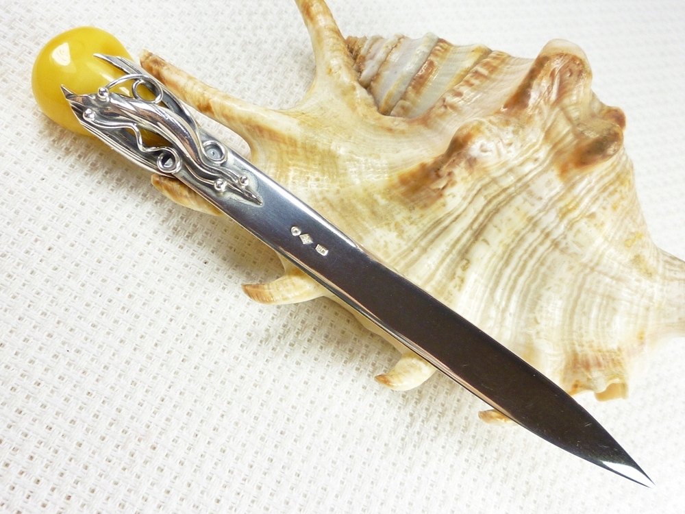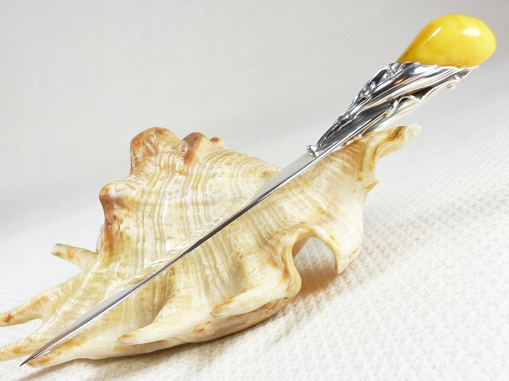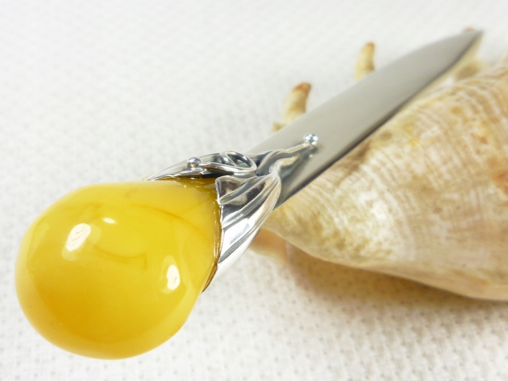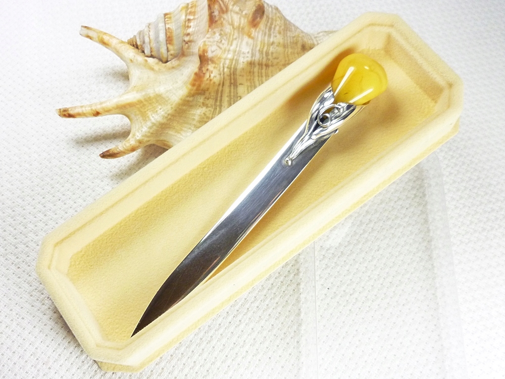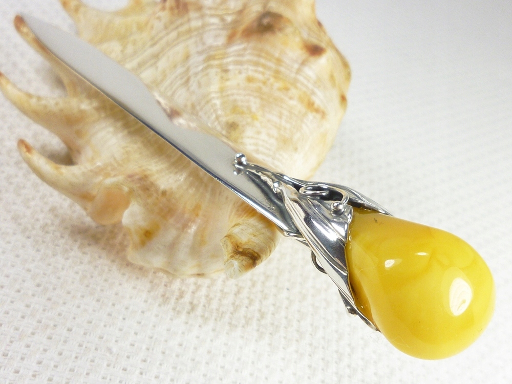 953/26 Ніж срібний з бурштином -HAND MADE - 12 см