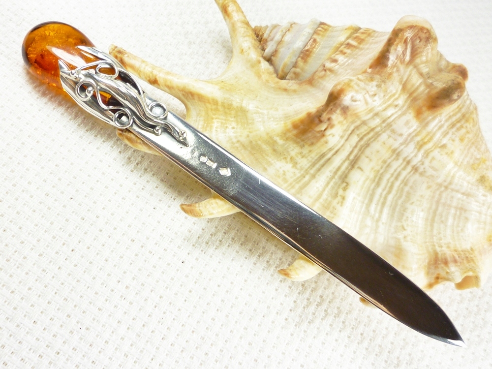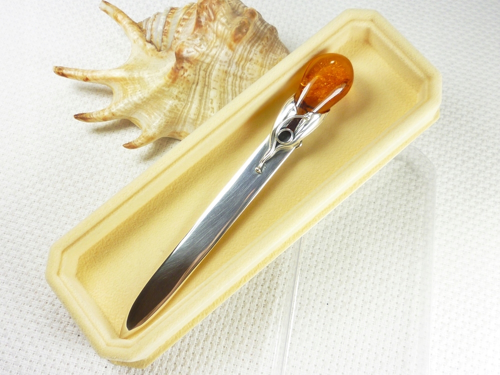 953/28 Ніж срібний з бурштином -HAND MADE - 11см