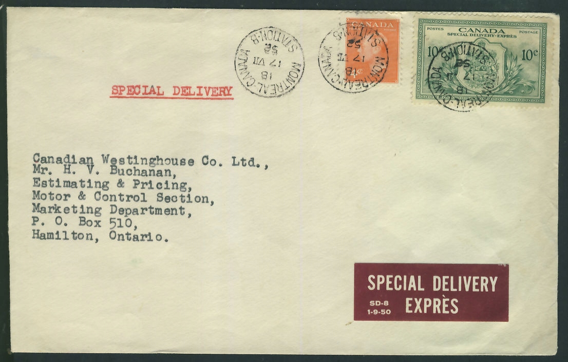 99 - Канада Монреаль 1952 Спеціальна експрес-доставка - st.odb Гамільтон