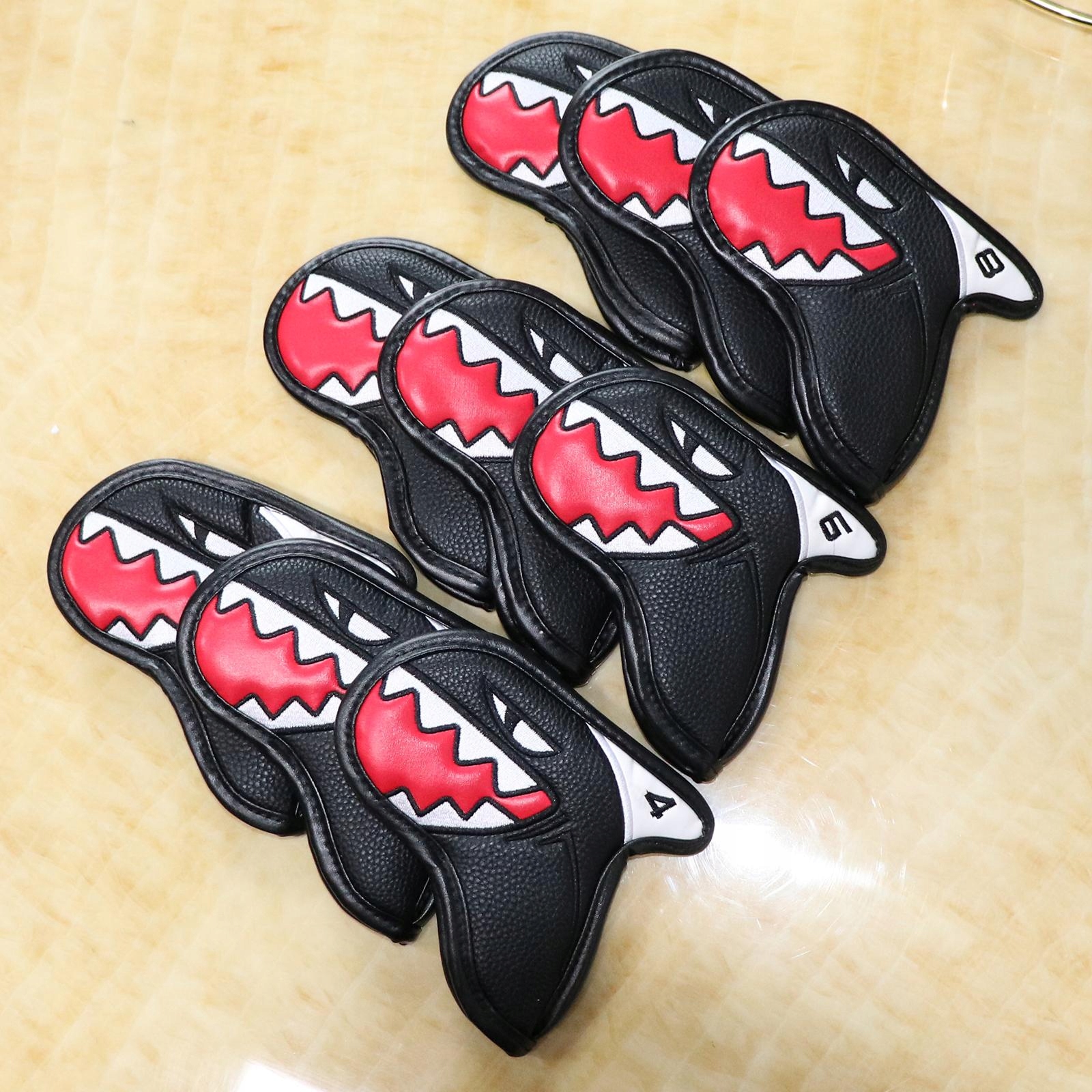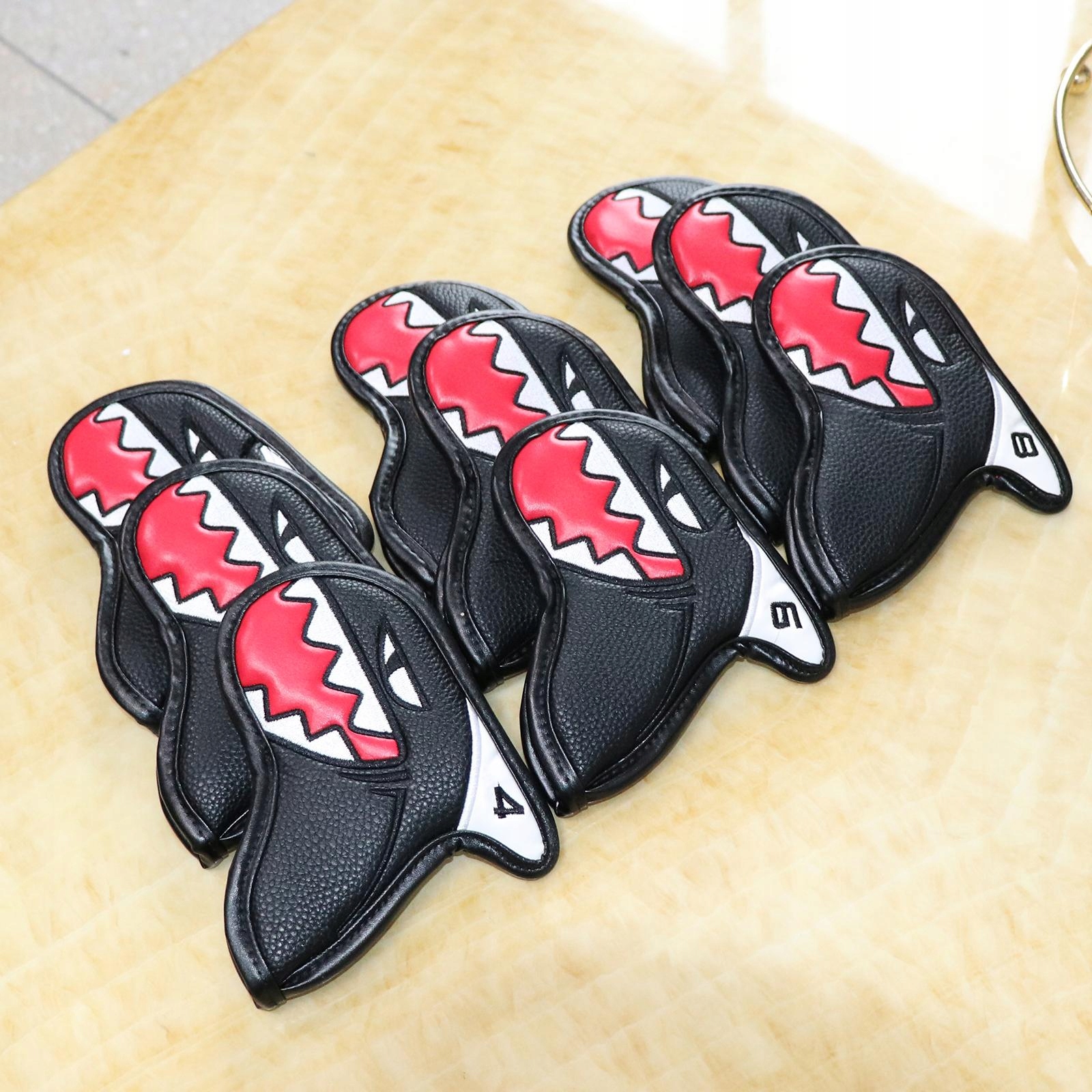 9x акула для гольфу Iron Head, шкіряні чохли для голови гольф -клубу PU, чорний