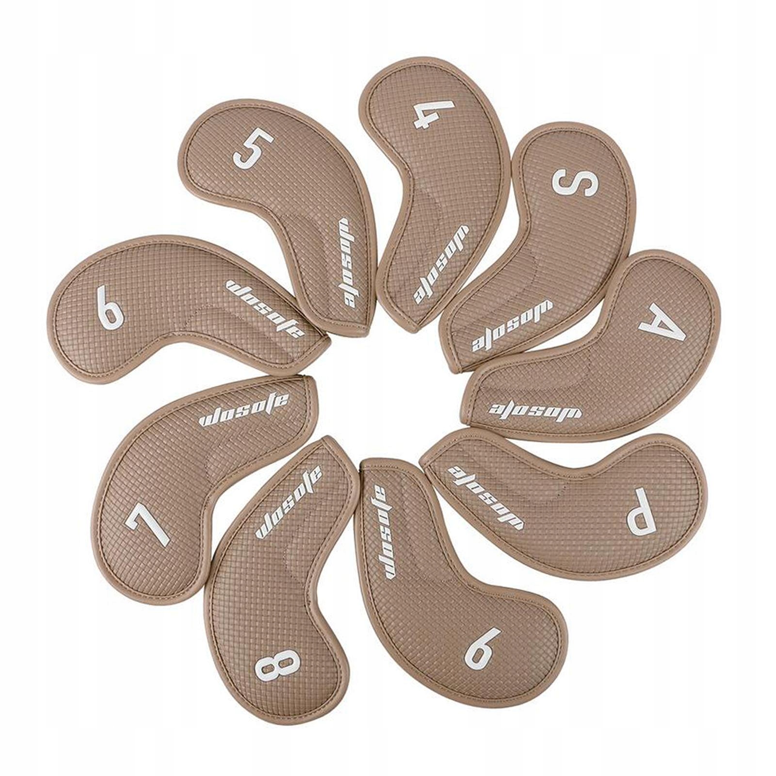 9x Golf Iron Covers Set Protection Sleeves Golf Club Brown Woven Texture