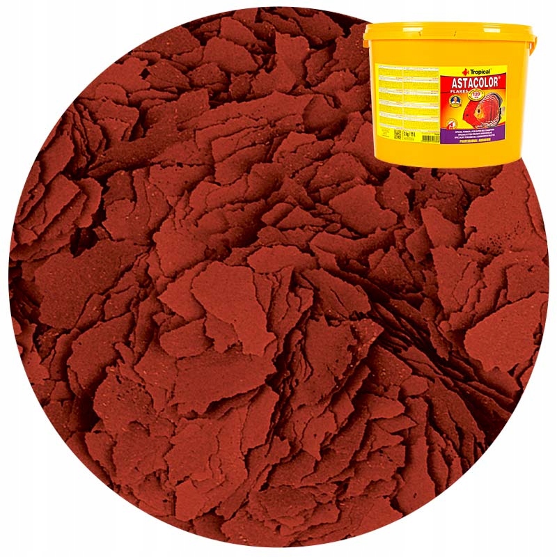 ASTACOLOR - це найякісніший пластівчастий корм для дискусів, що покращує колір. Висока доза натуральних каротиноїдів, у тому числі астаксантин, який легко засвоюється рибою, змушує всіх риб швидко набувати насичений і блискучий колір. Добре вгодована риба з підшкірним шаром жирової клітковини розвиває особливо яскраве забарвлення.
