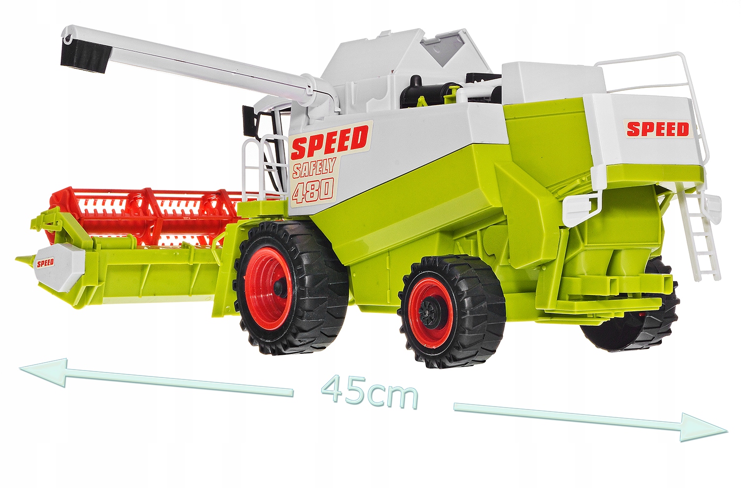 Зернозбиральний комбайн виготовлено з максимально можливим відтворенням деталей справжньої сільськогосподарської машини.